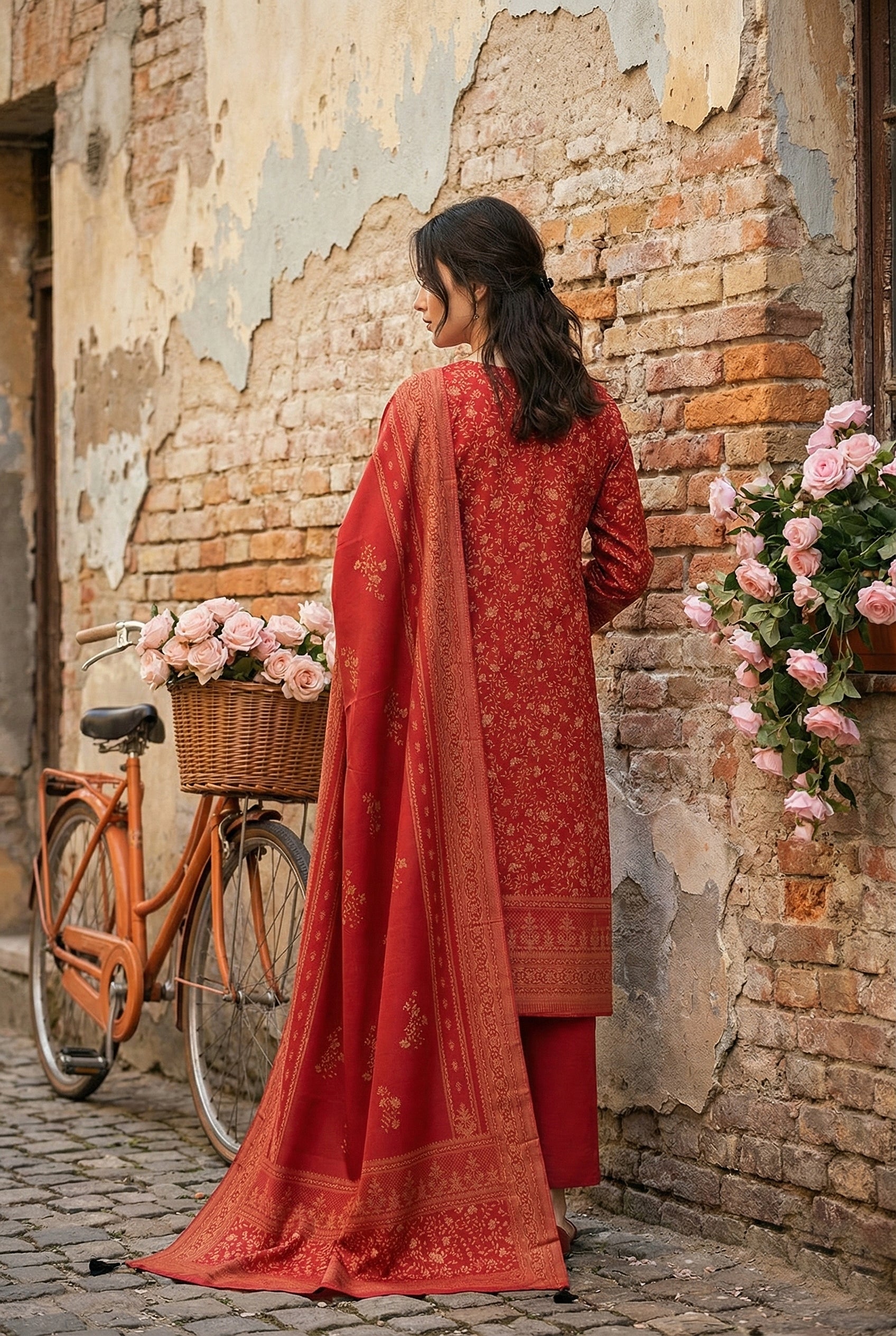 RUBY RED 3Pc Premium Dhanak Printed Suits (Unstitched)