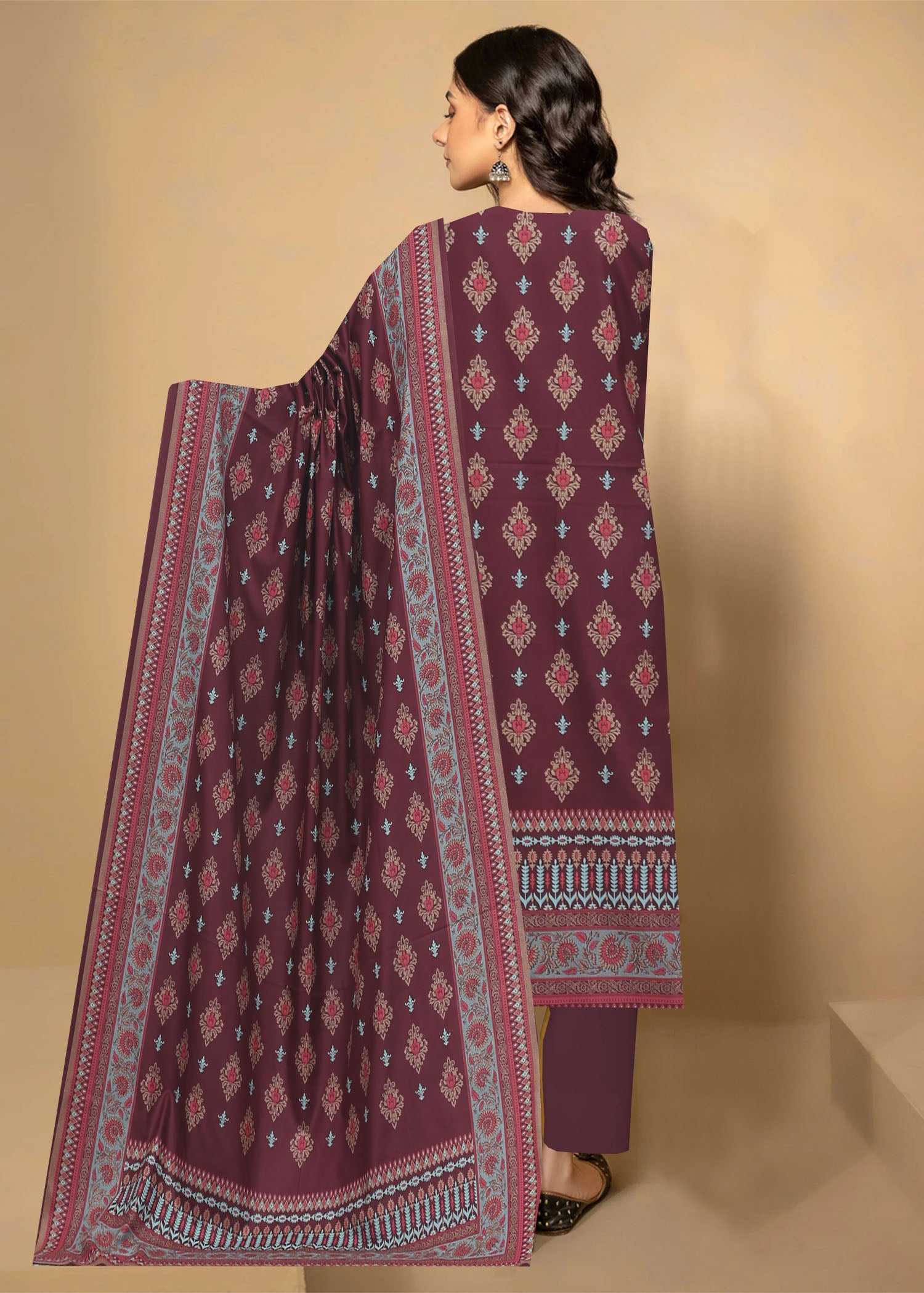 BASE WINE WITH MULTI PRINT 3Pc Premium Dhanak Printed Suits (Unstitched)