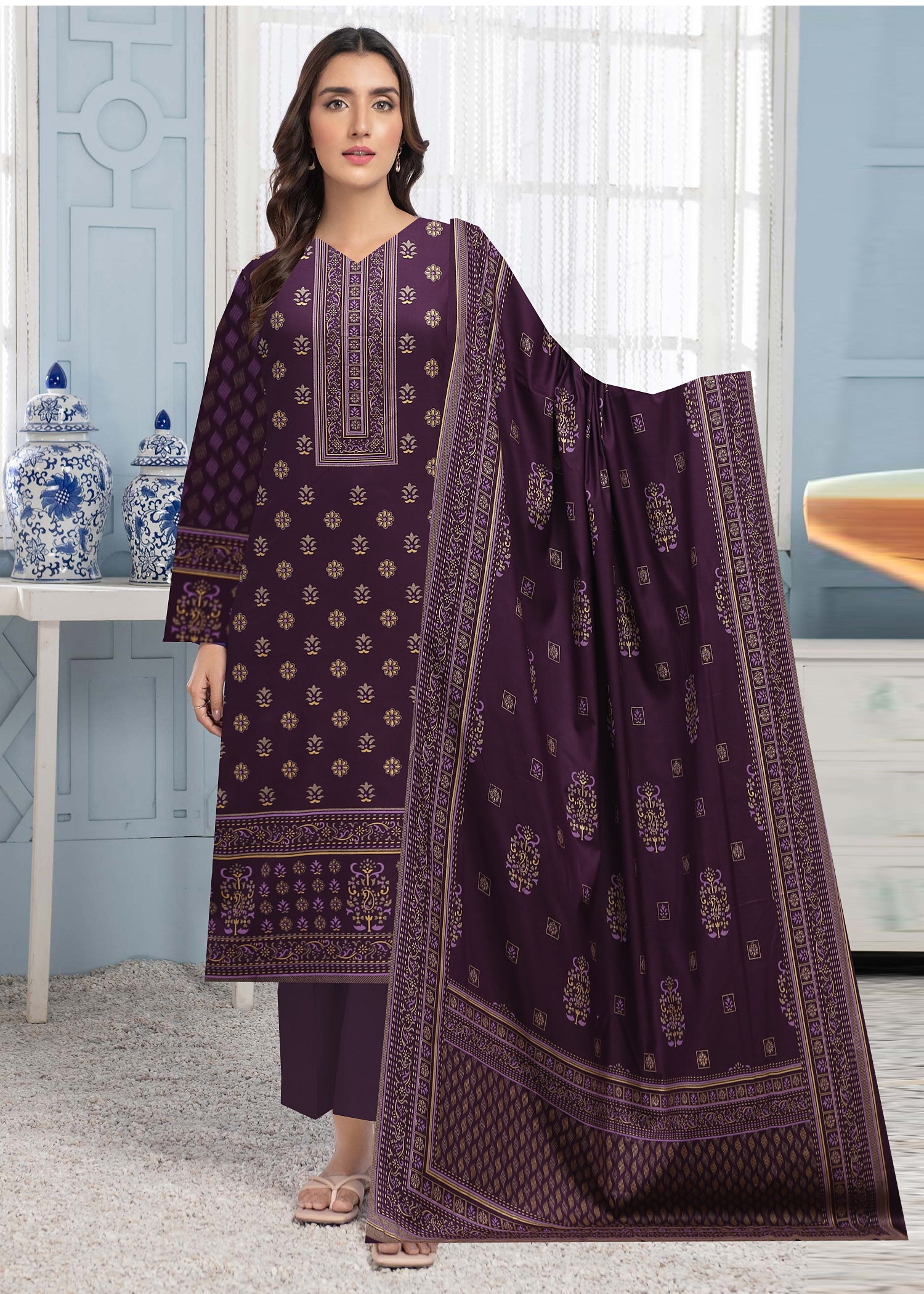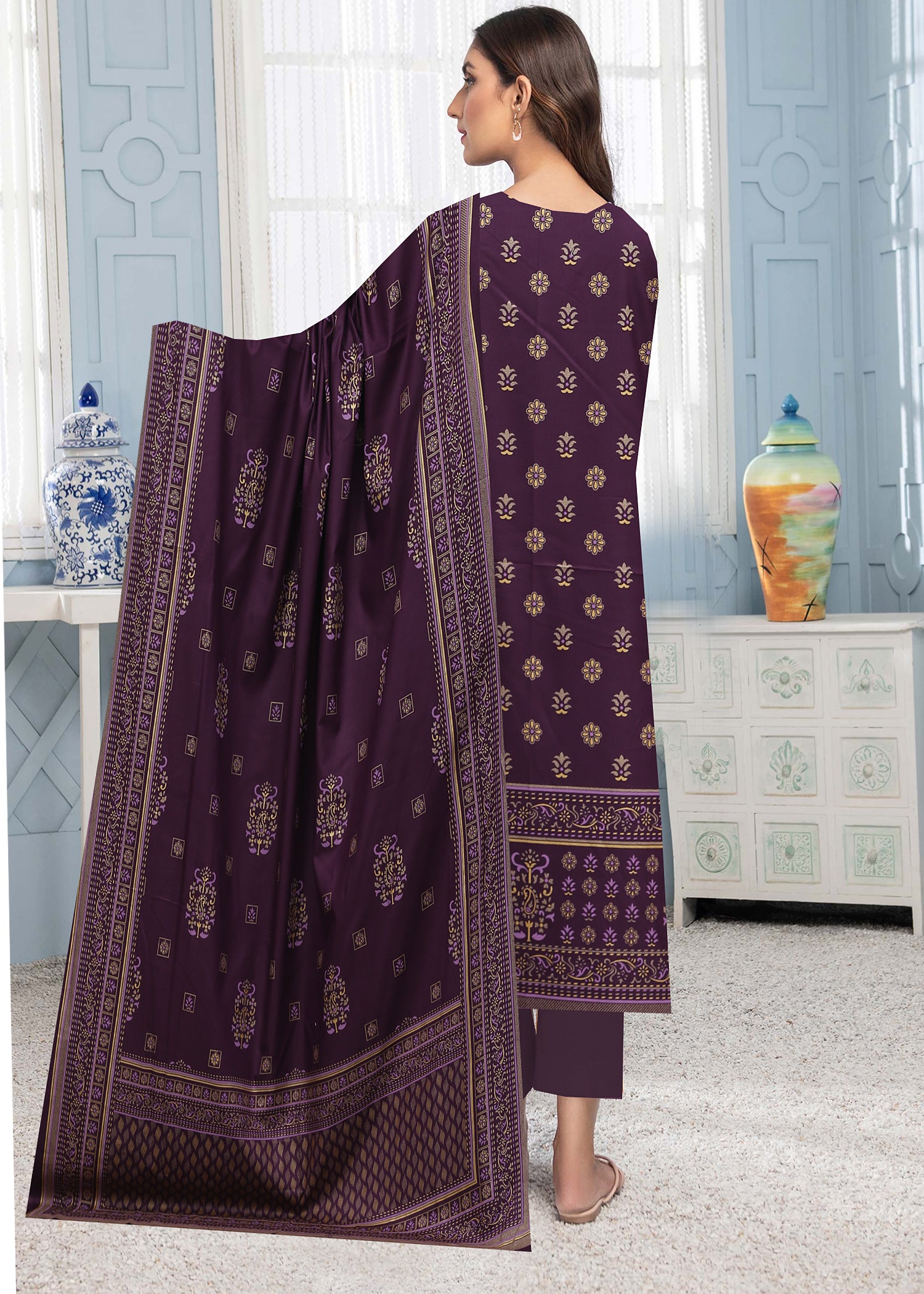 EGG PLANT PURPLE 3Pc Premium Dhanak Printed Suits (Unstitched)
