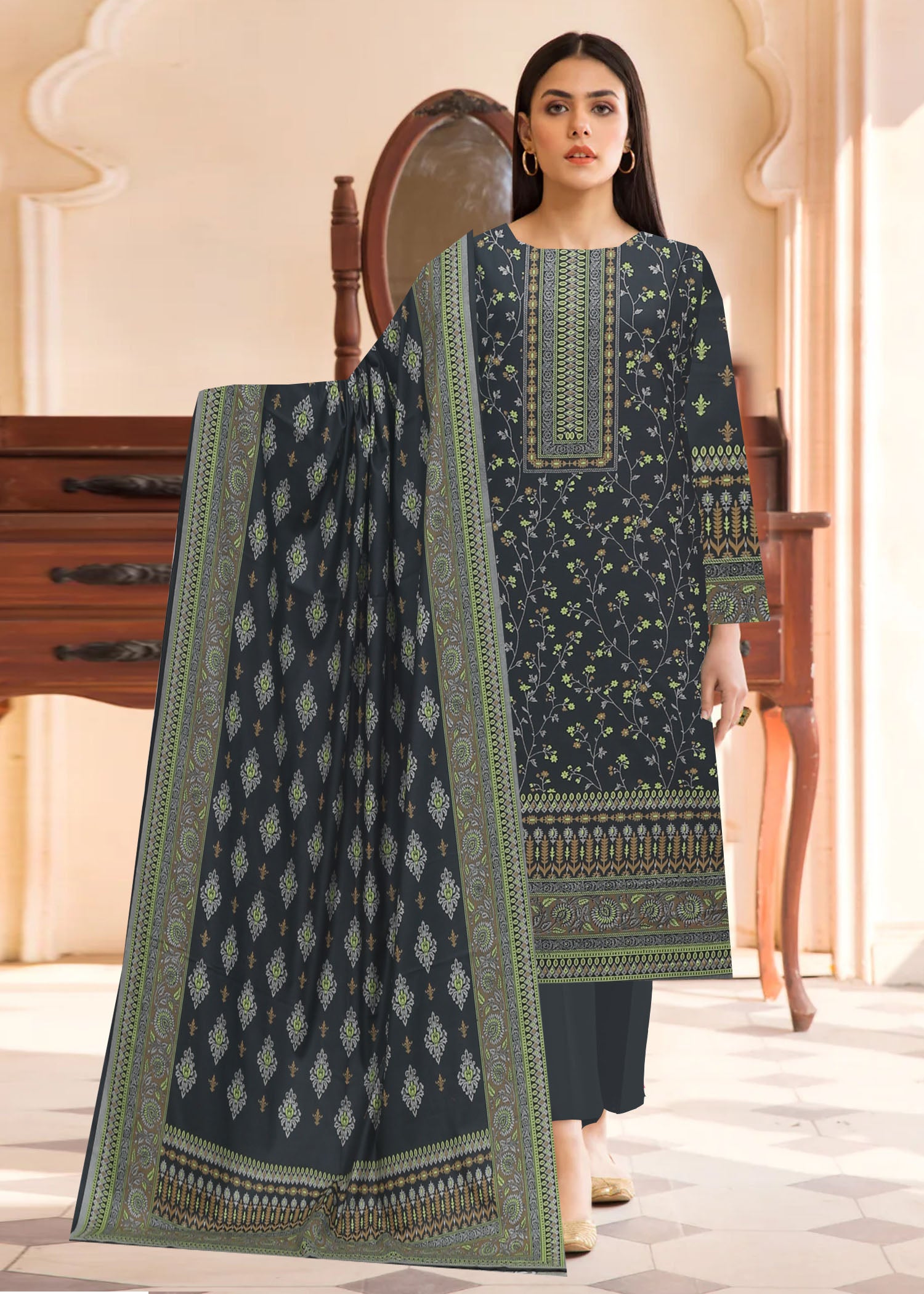 DARK GREEN 3Pc Premium Dhanak Printed Suits (Unstitched)