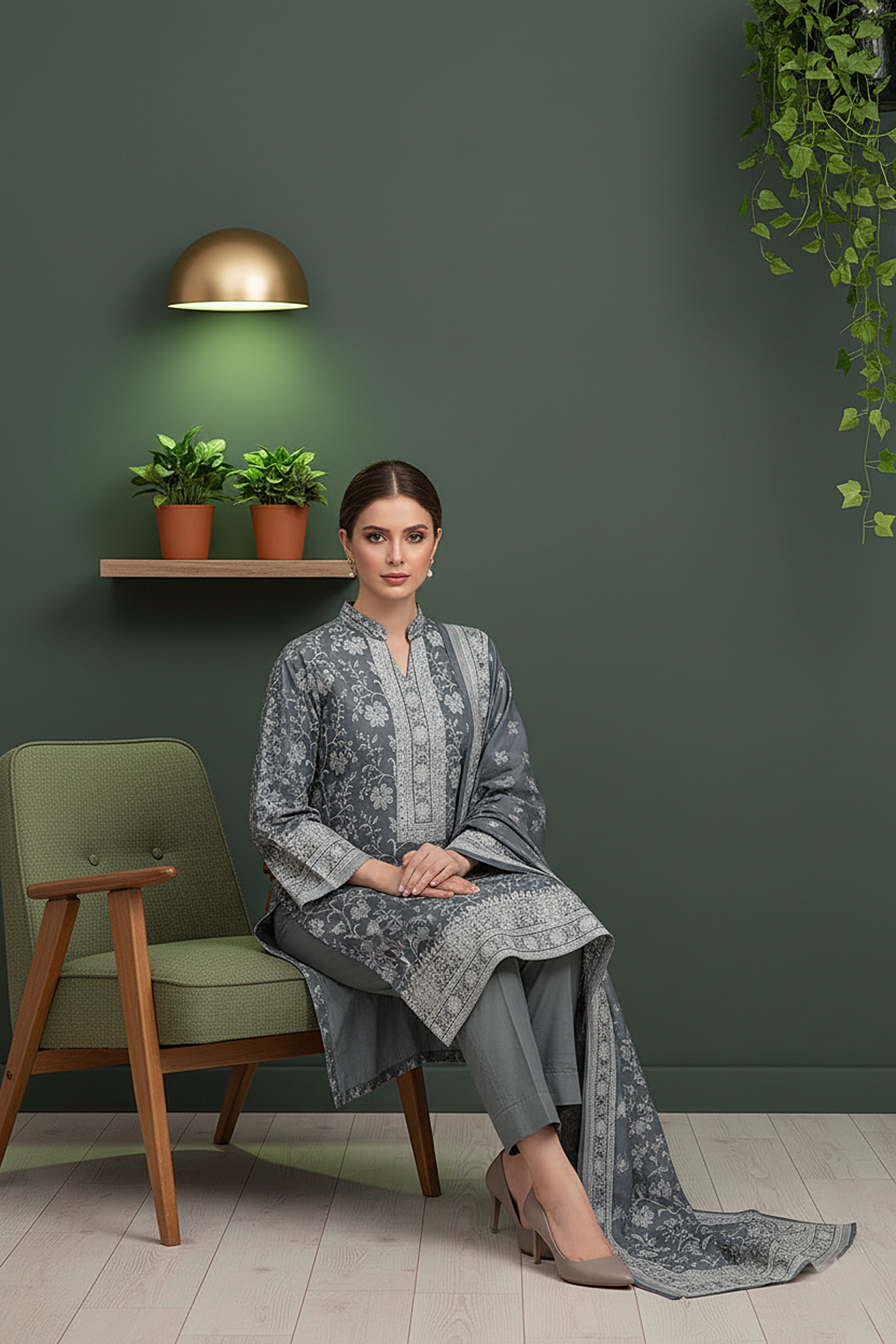 STONE GRAY 3Pc Premium Dhanak Printed Suits (Unstitched)