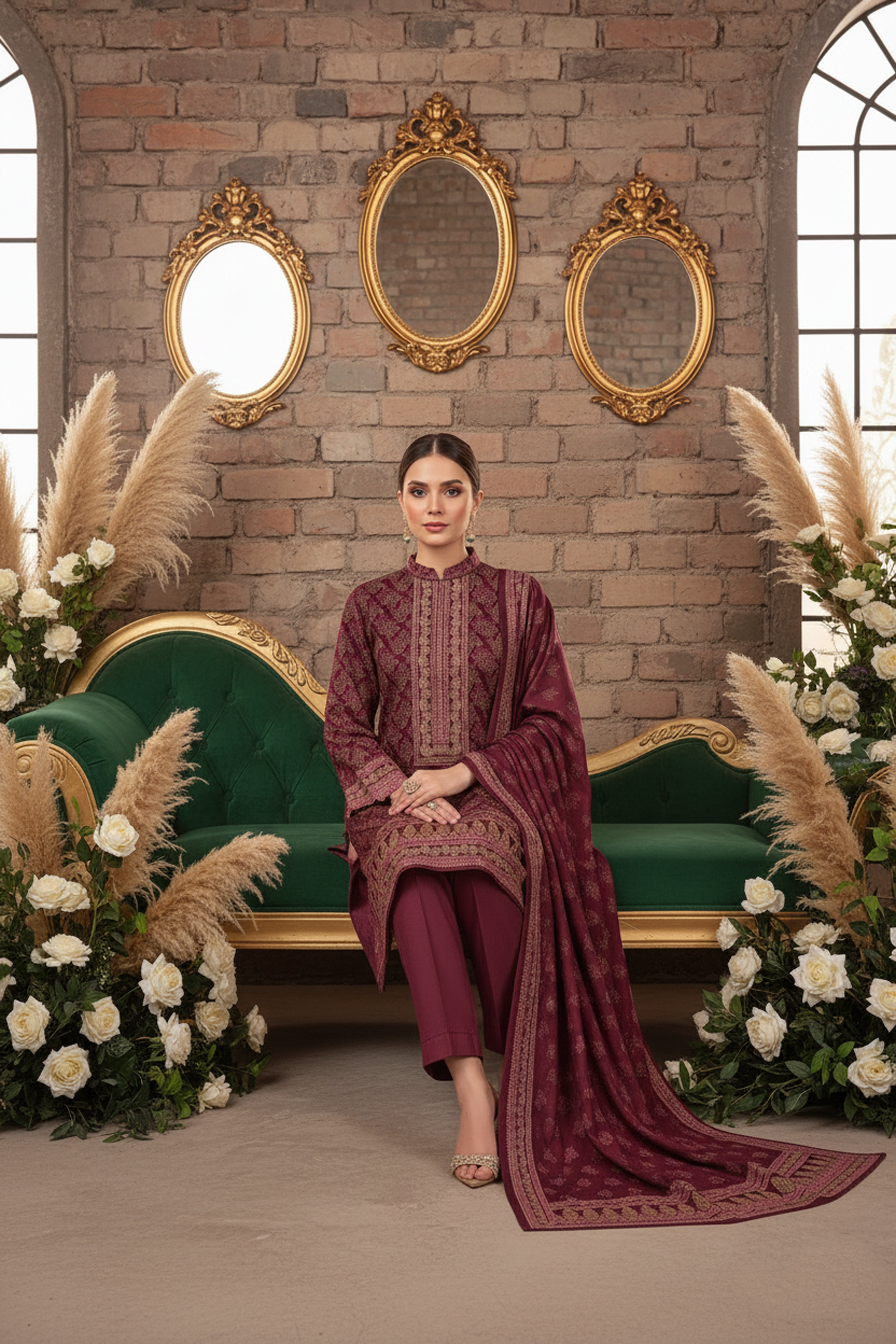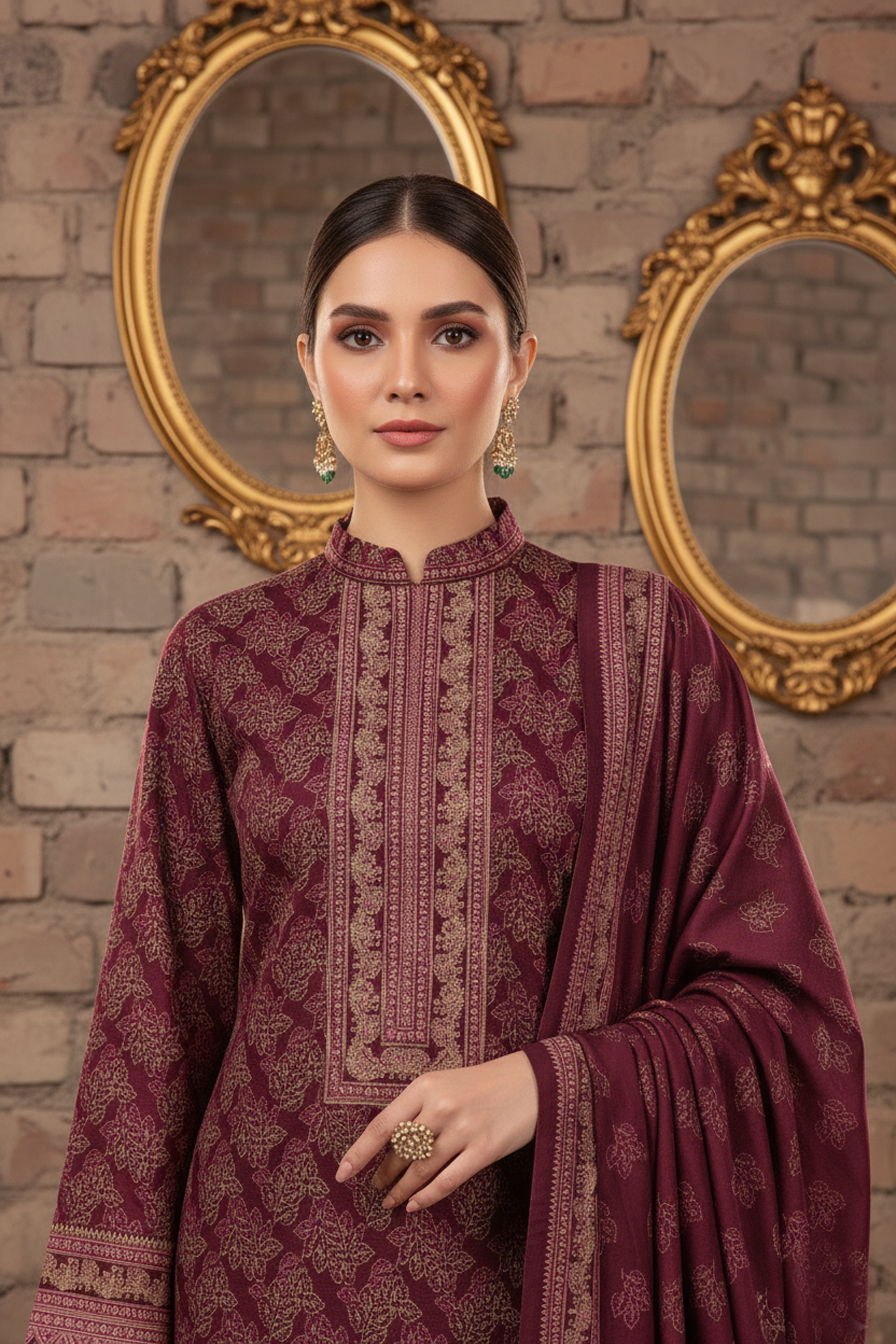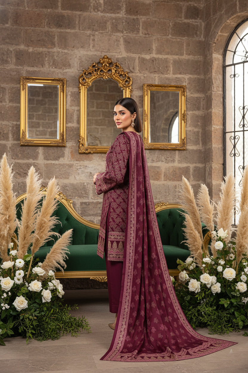 GRAPE PURPLE 3Pc Premium Dhanak Printed Suits (Unstitched)