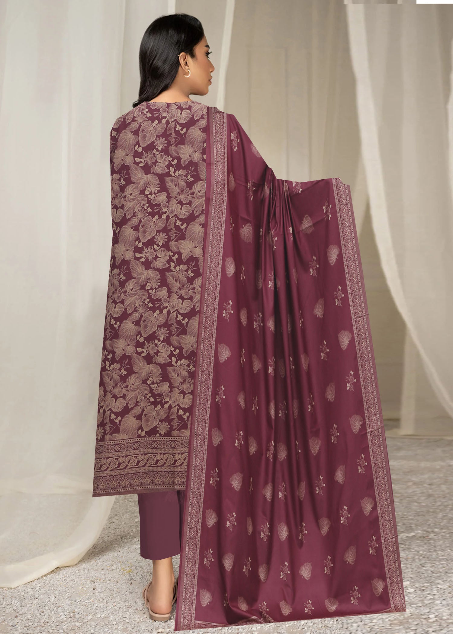 GRAPE PURPLE 3Pc Premium Dhanak Printed Suits (Unstitched)