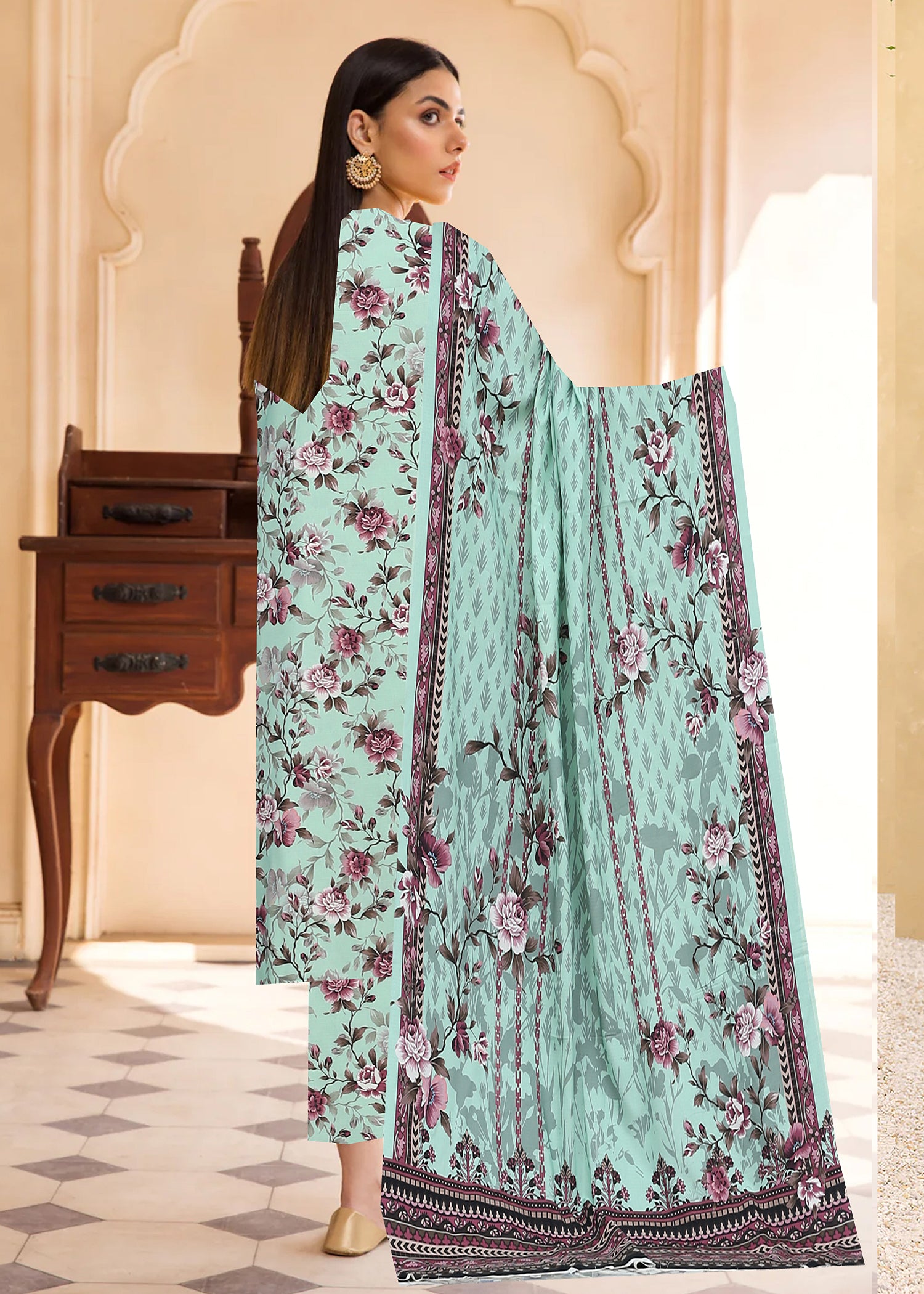 SAGE GREEN AND PURPLE 3pc Premium Doria linen suit with linen dupatta (Unstitched)