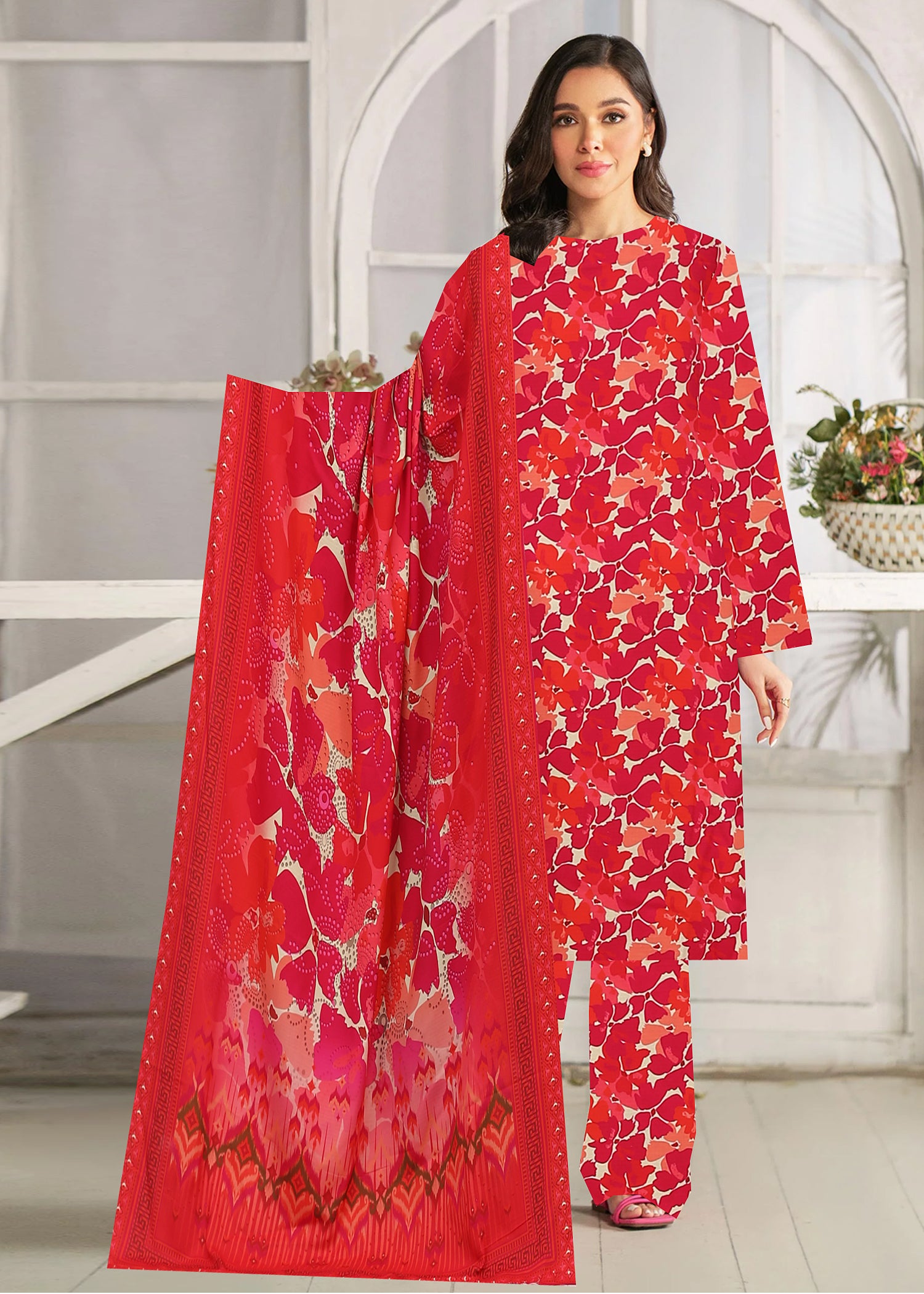 RED PEACH AND CREAM 3pc Premium Doria linen suit with linen dupatta (Unstitched)