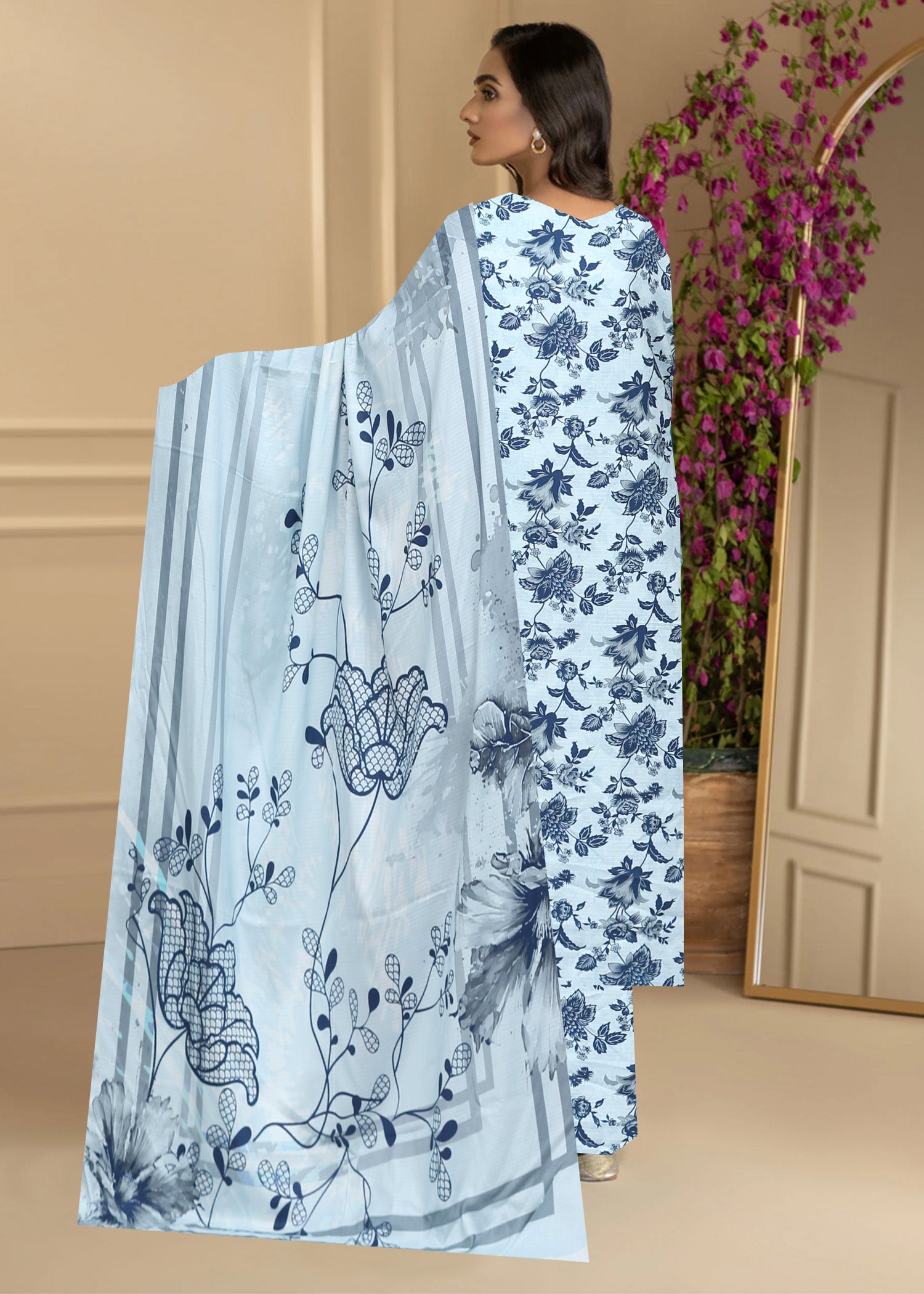 SHADES OF BLUE & GREY 3pc Premium Doria linen suit with linen dupatta (Unstitched)