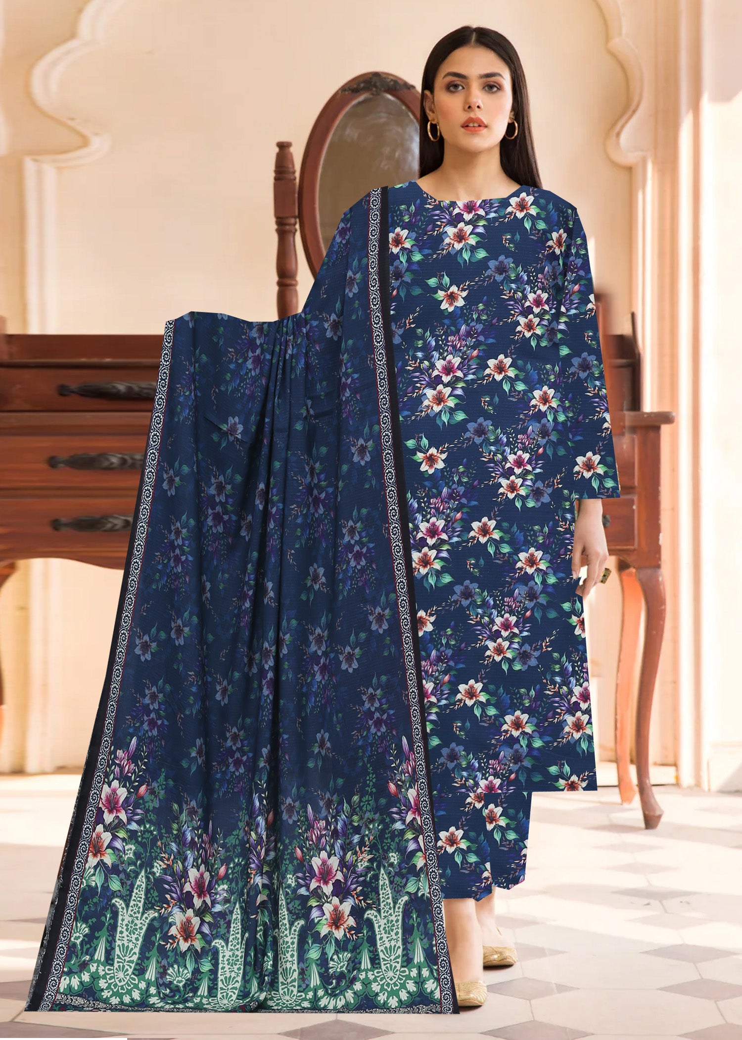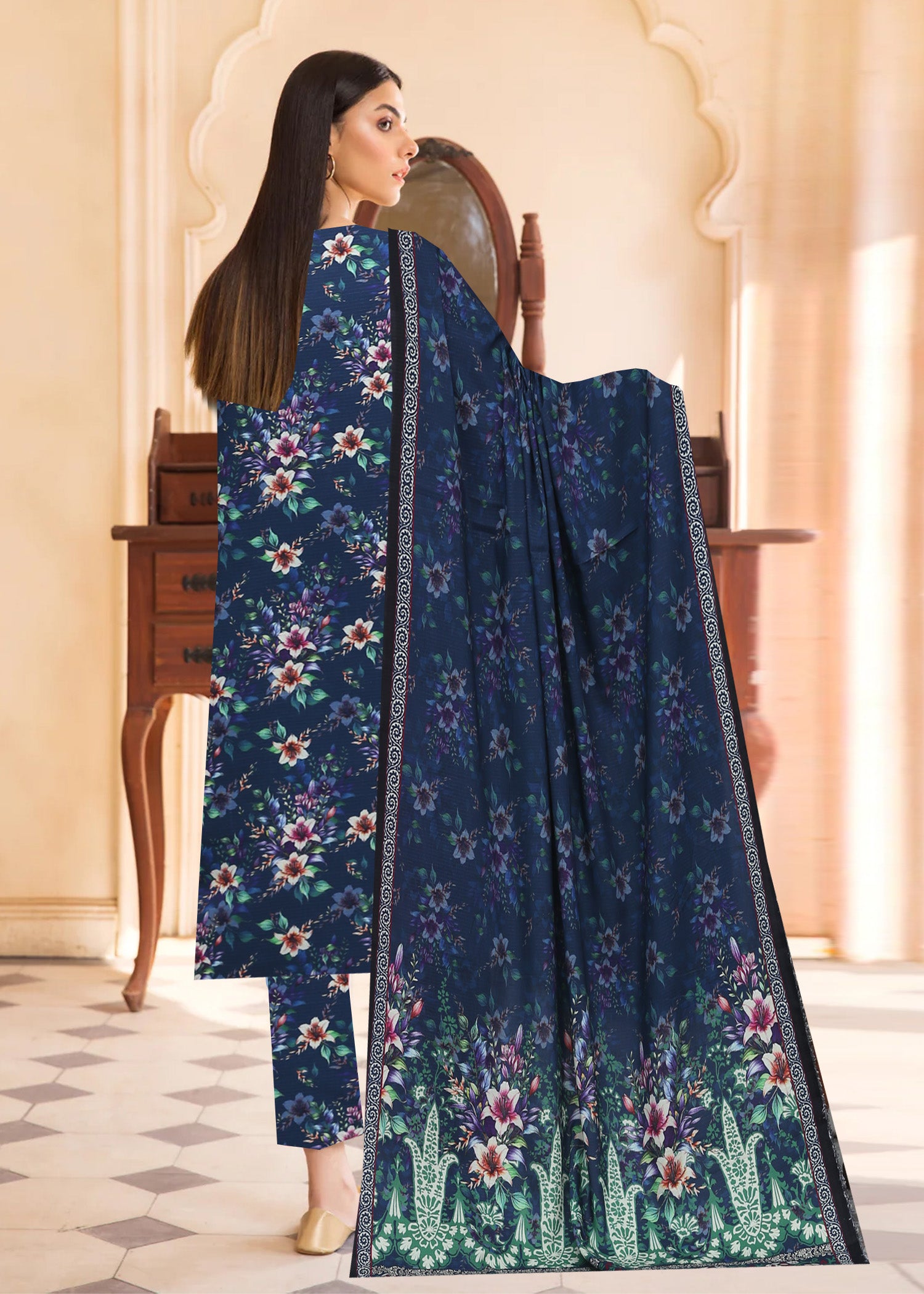 NAVY BLUE & MULTI 3pc Premium Doria linen suit with linen dupatta (Unstitched)