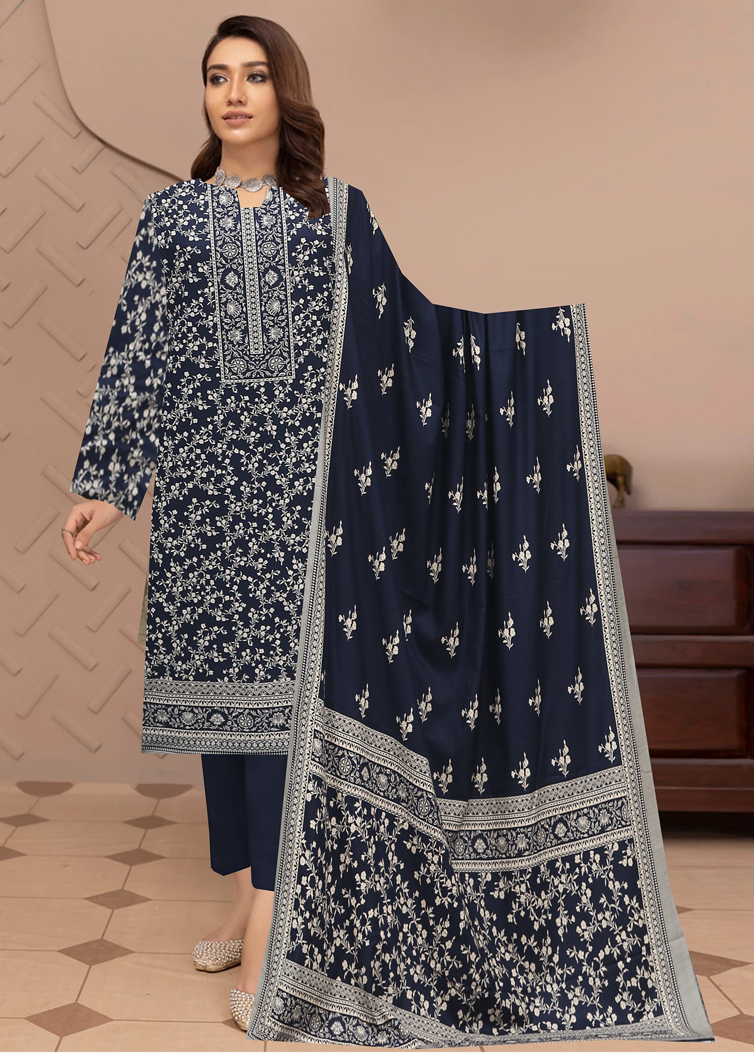 NAVY BLUE 3pc Premium linen pasted suit with linen dupatta (Unstitched)