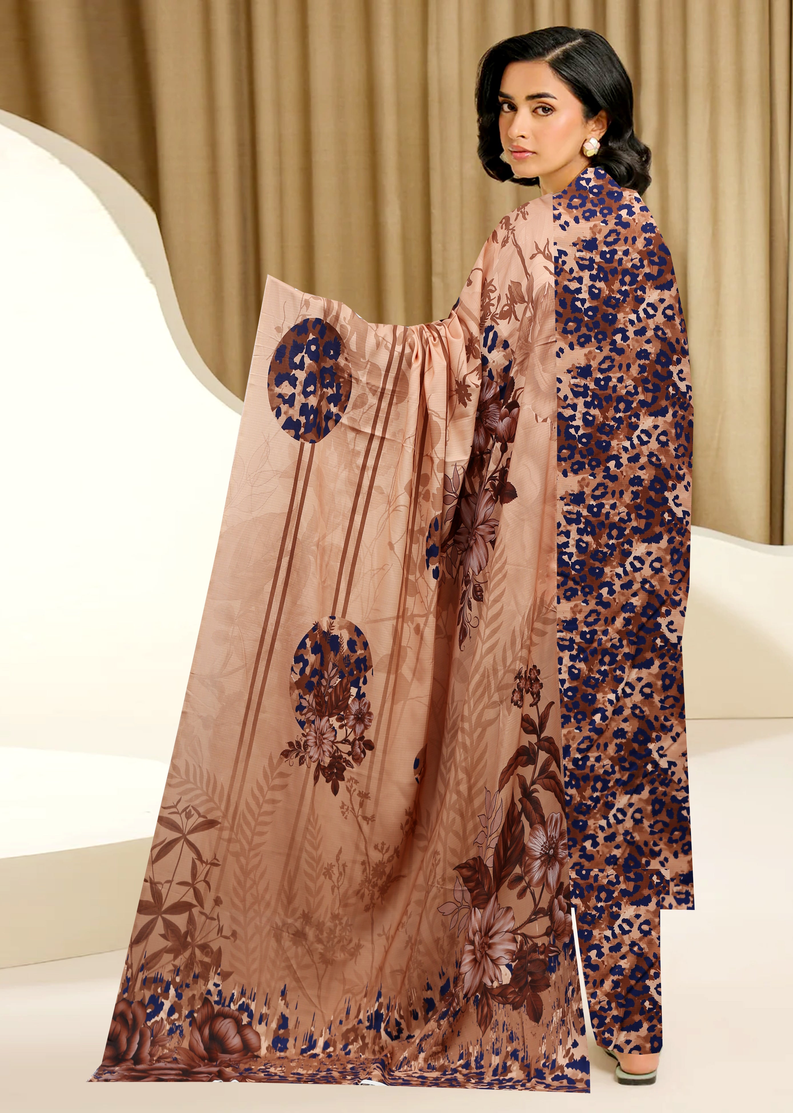 PEACH BROWN AND NAVY BLUE 3pc Premium Doria linen suit with linen dupatta (Unstitched)