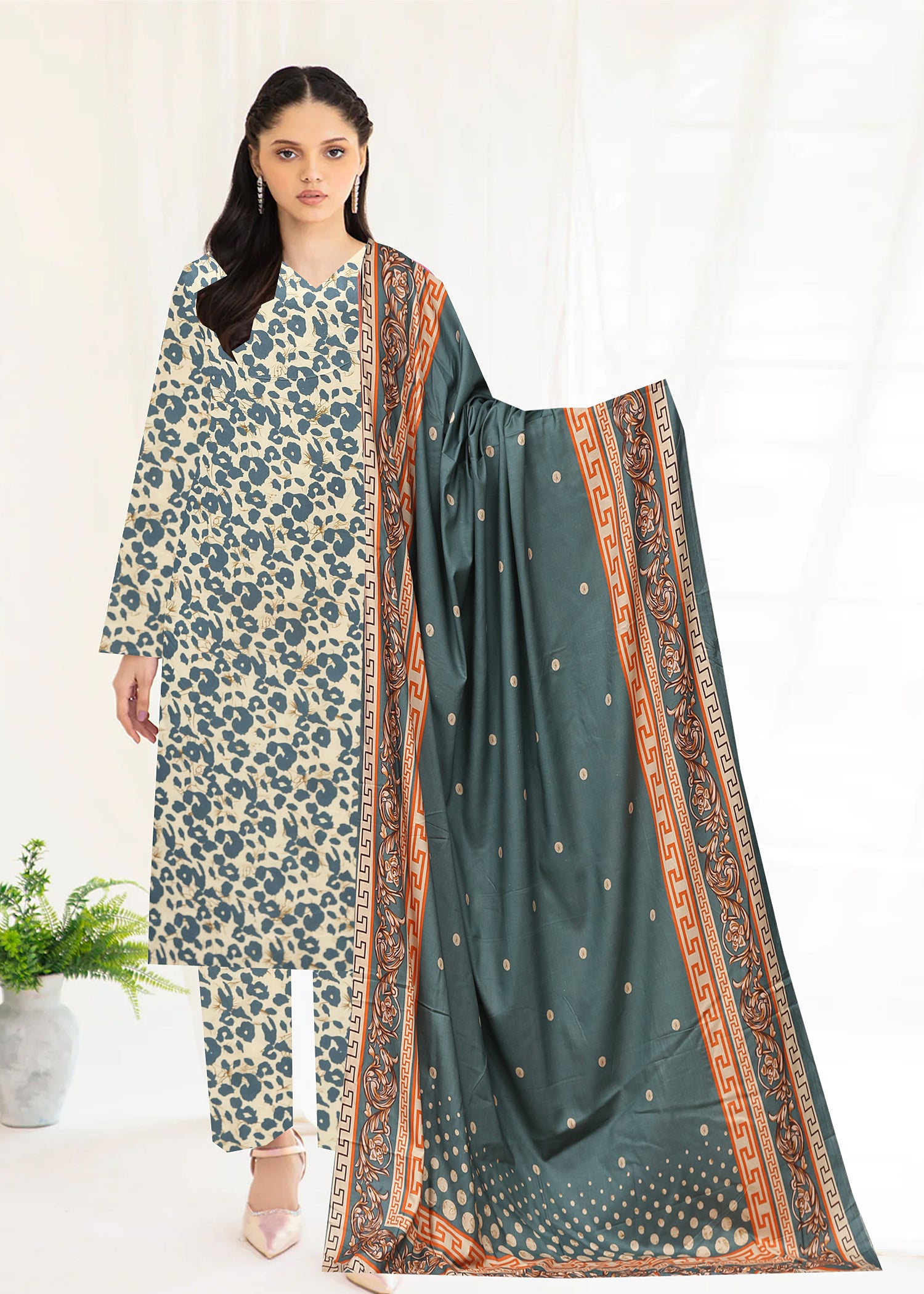 OLIVE GREEN AND BOTTLE GREEN 3pc Premium linen suit with linen dupatta (Unstitched)