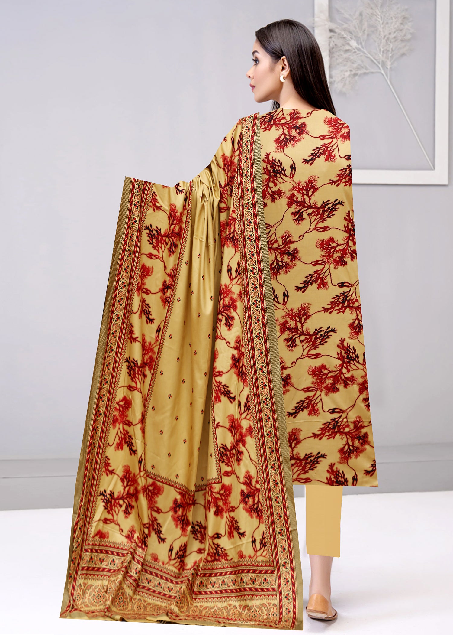 FAWN RED & BLACK 3pc Premium linen suit with linen dupatta (Unstitched)