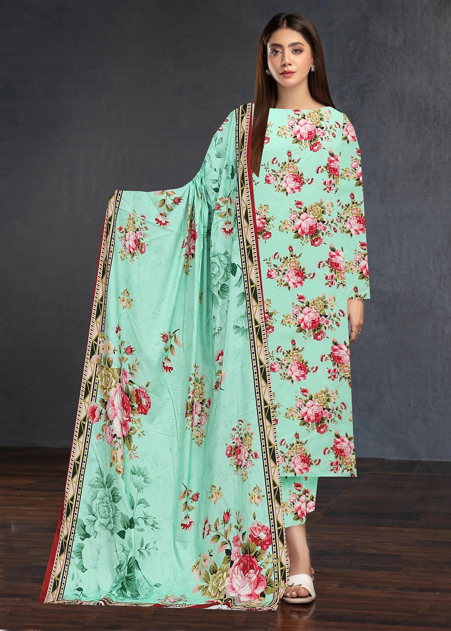 MINT GREEN , PINK 3pc Premium linen suit with linen dupatta (Unstitched)