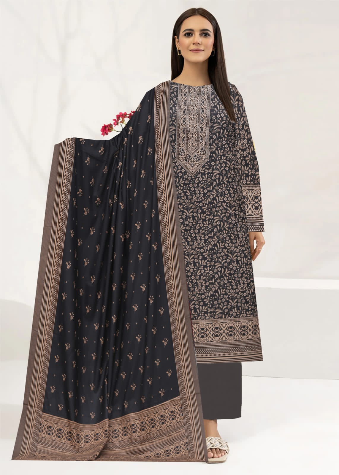 DARK GREY & BEIGE 3pc Premium linen suit with linen dupatta (Unstitched)