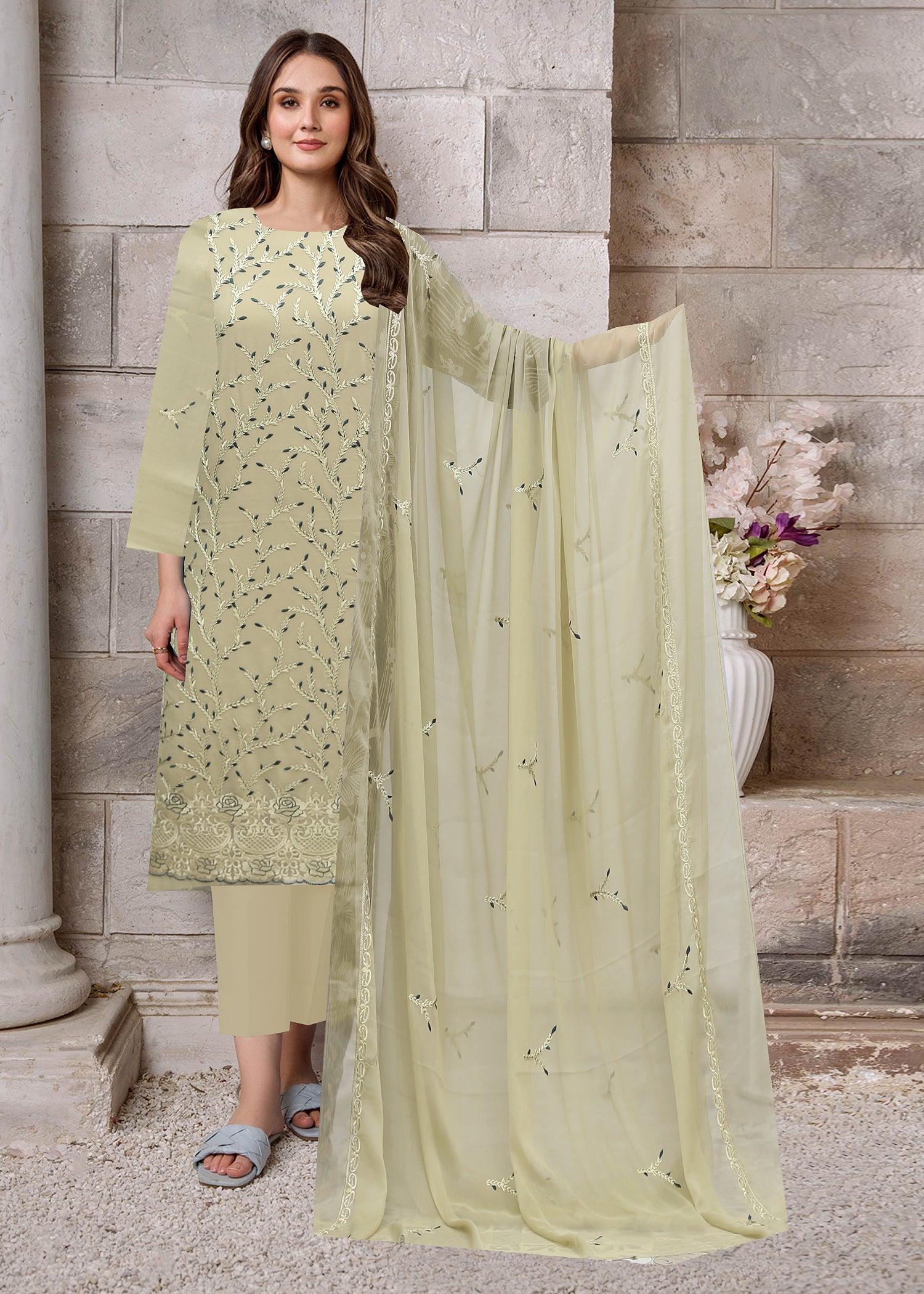 LIGHT PISTACHIO GREEN AND BOTTLE GREEN Chiffon Embroidered 3Pc Suit (Unstitched)