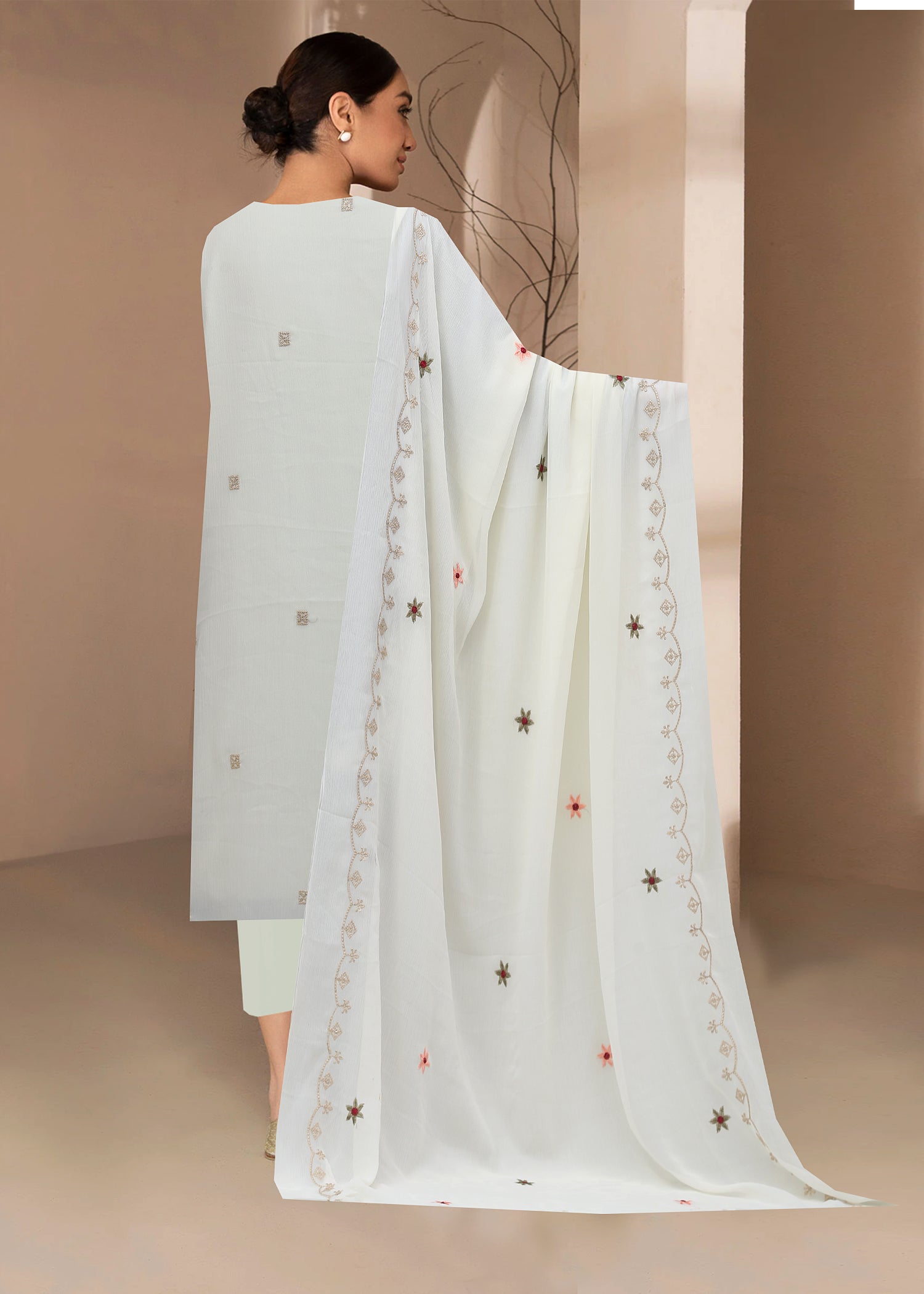 OFF WHITE WITH MAROON GREEN AND DULL GOLD Chiffon Embroidered 3Pc Suit (Unstitched)