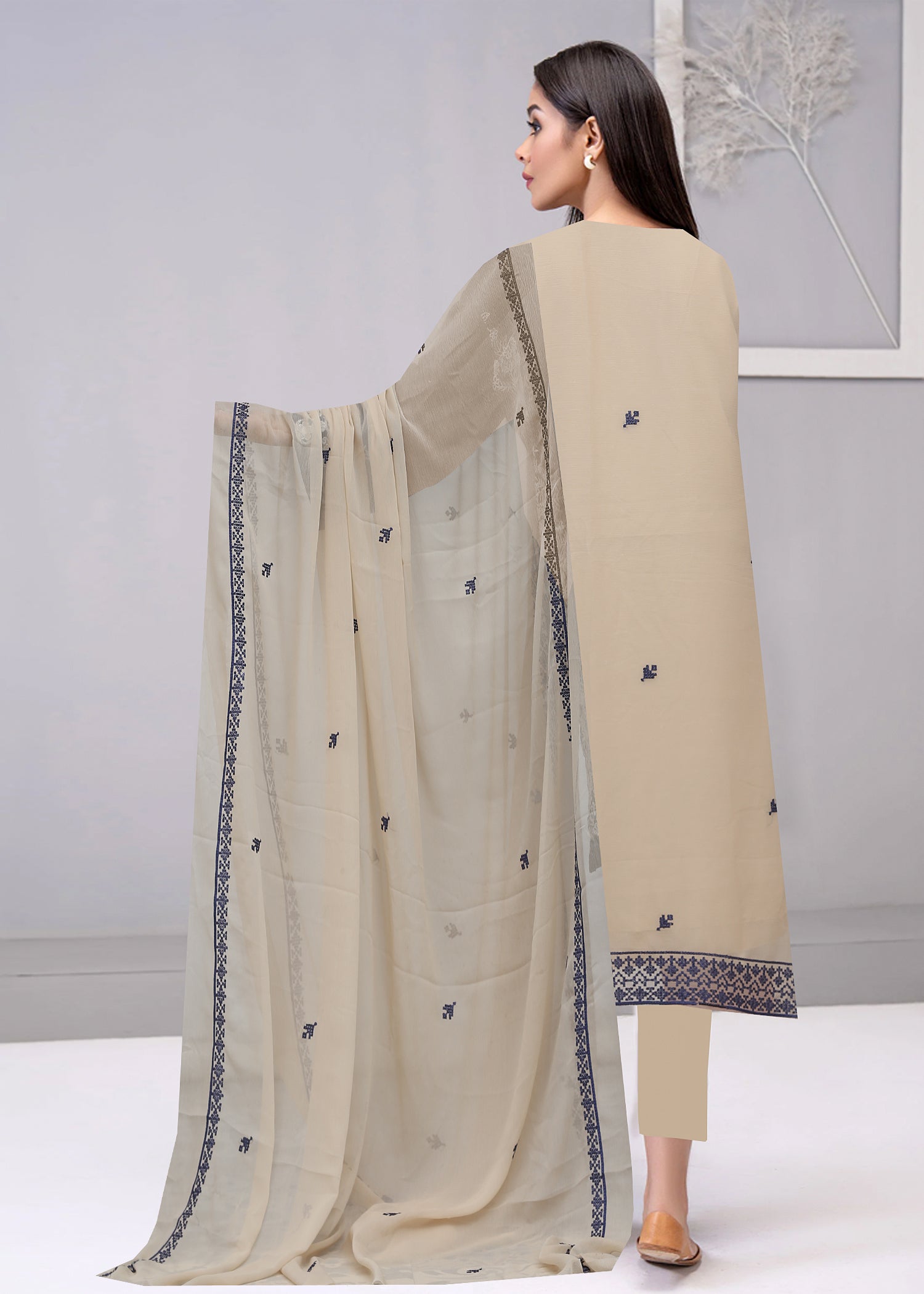 SKIN AND NAVY BLUE Chiffon Embroidered 3Pc Suit (Unstitched)