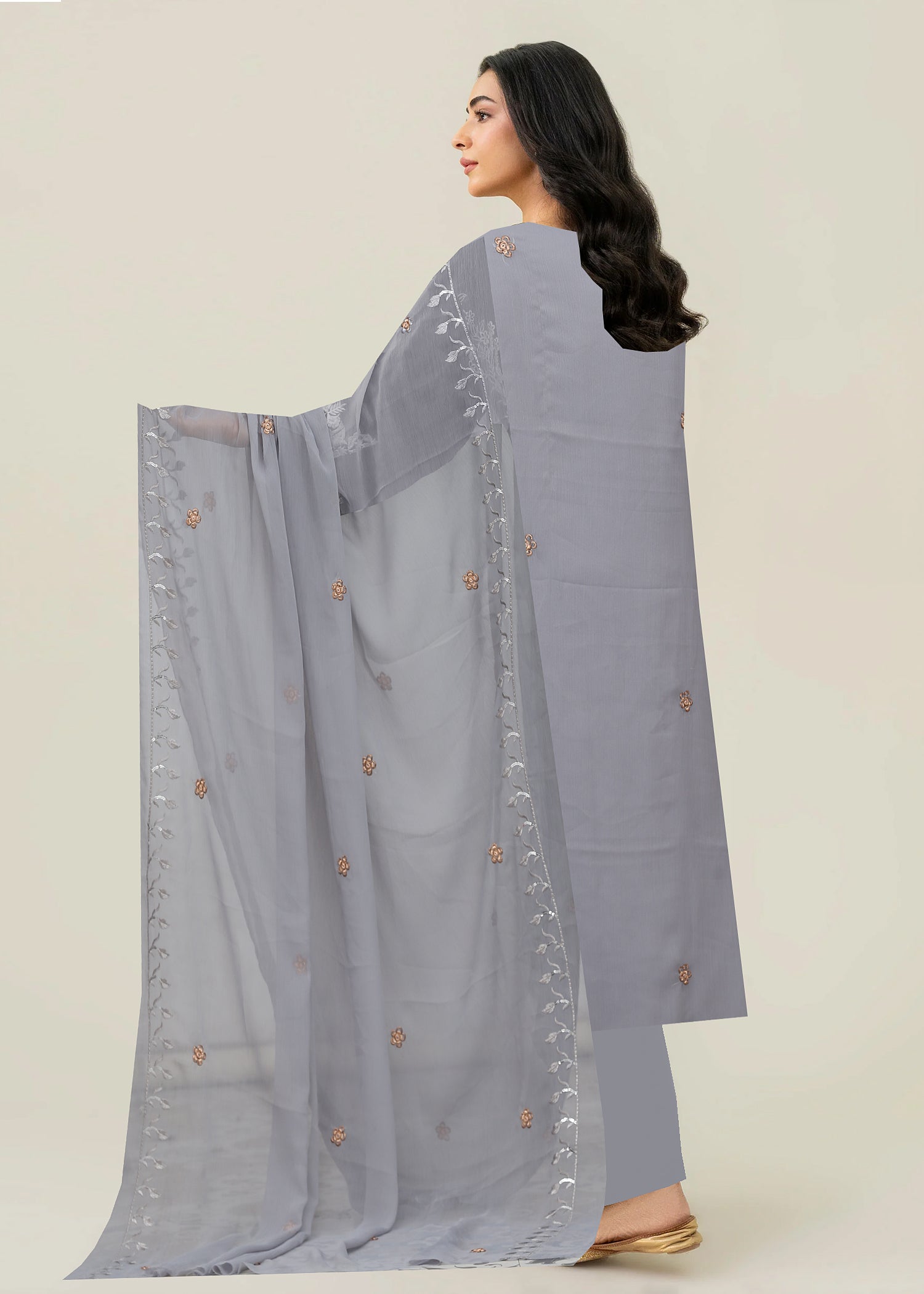 GREY AND BRONZE Chiffon Embroidered 3Pc Suit (Unstitched)