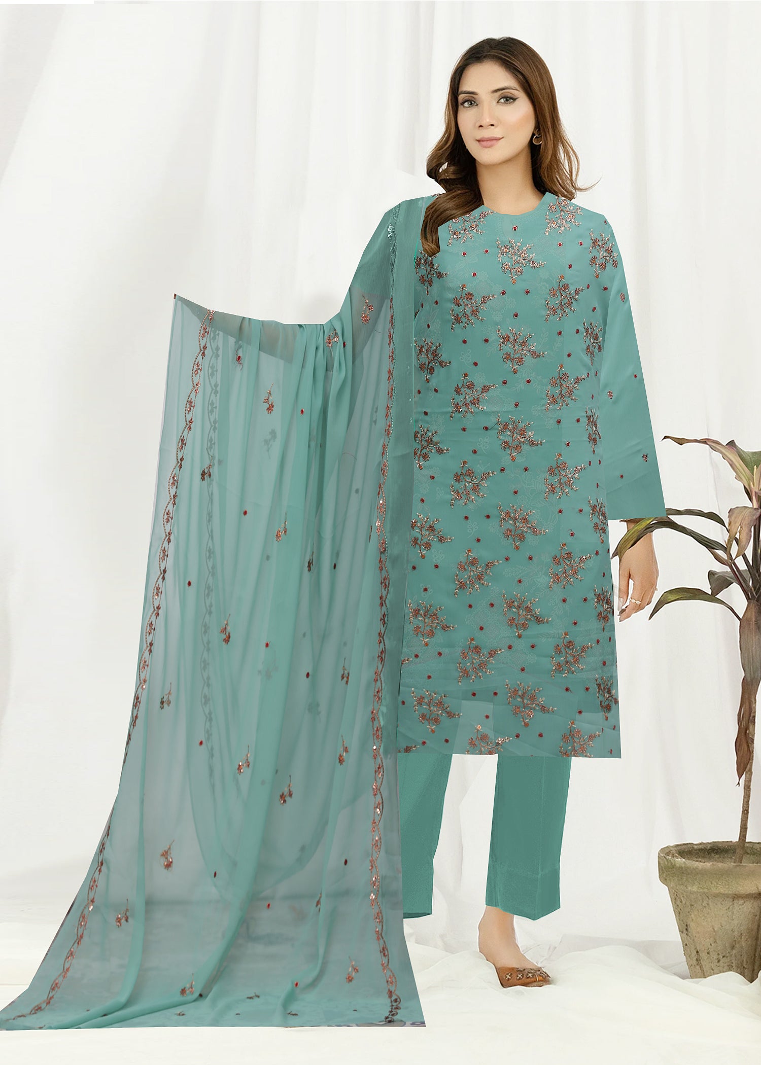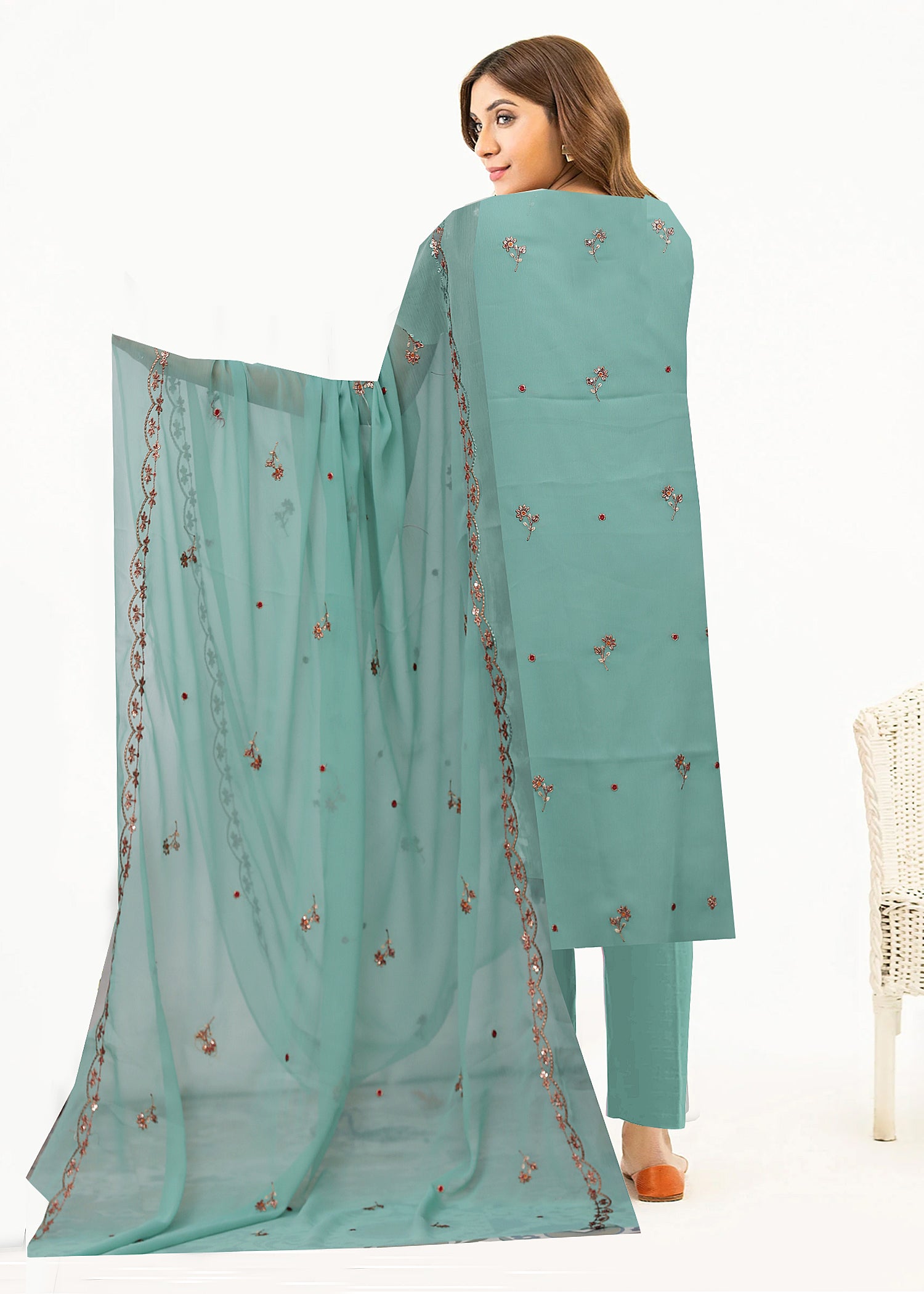 SAGE GREEN Chiffon Embroidered 3Pc Suit (Unstitched)