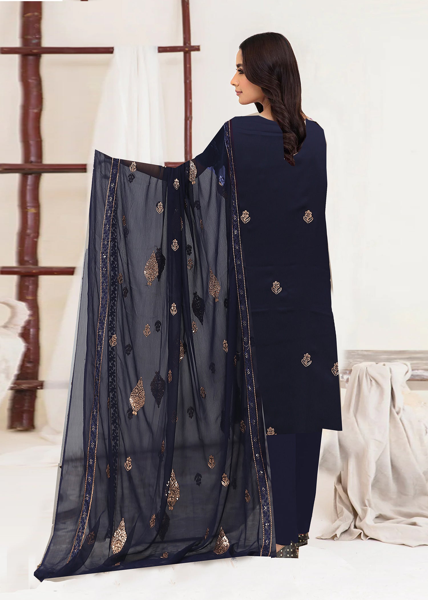 MIDNIGHT BLUE AND BRONZE Chiffon Embroidered 3Pc Suit (Unstitched)