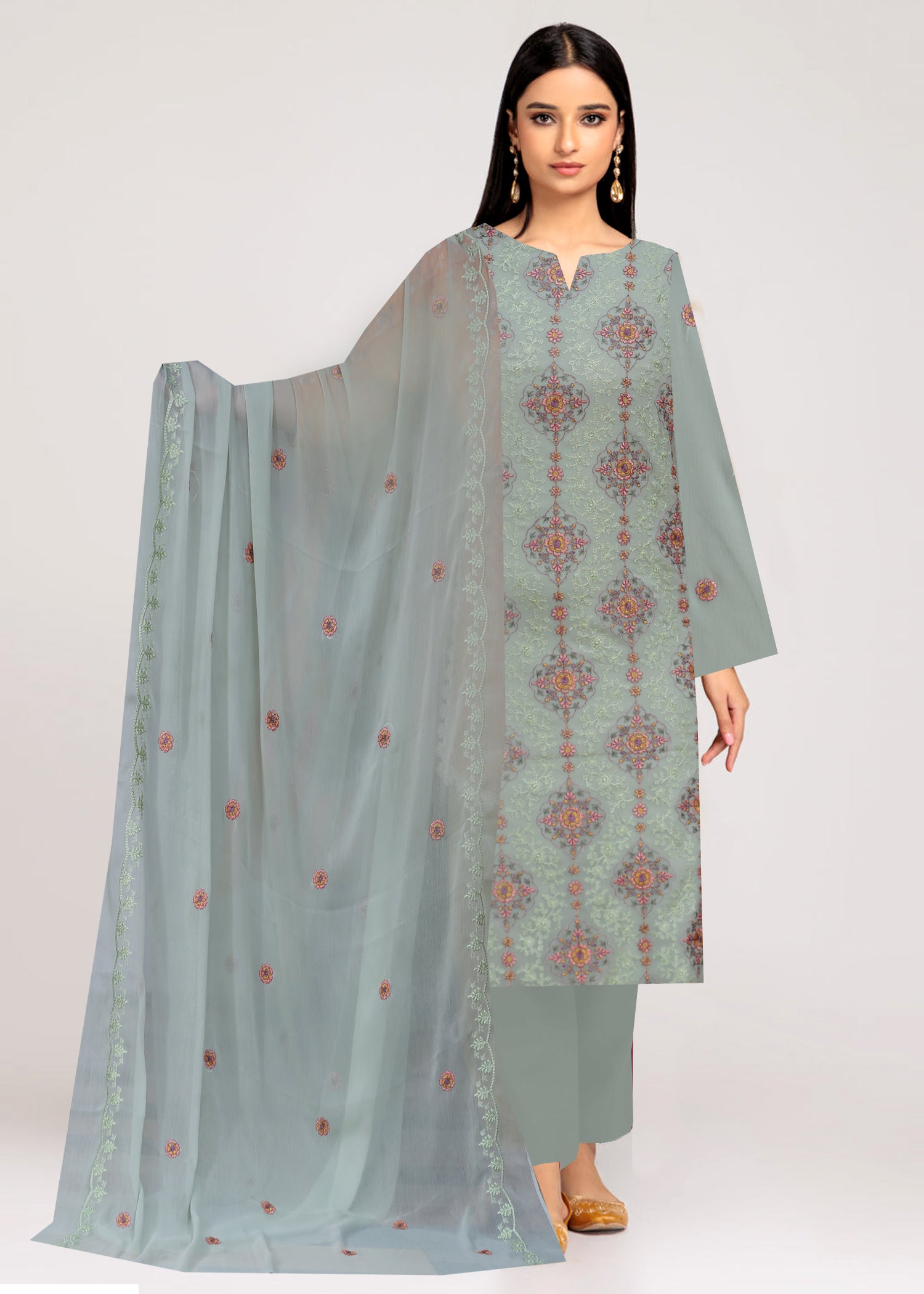 PISTACHIO GREEN WITH PINK AND PURPLE Chiffon Embroidered 3Pc Suit (Unstitched)