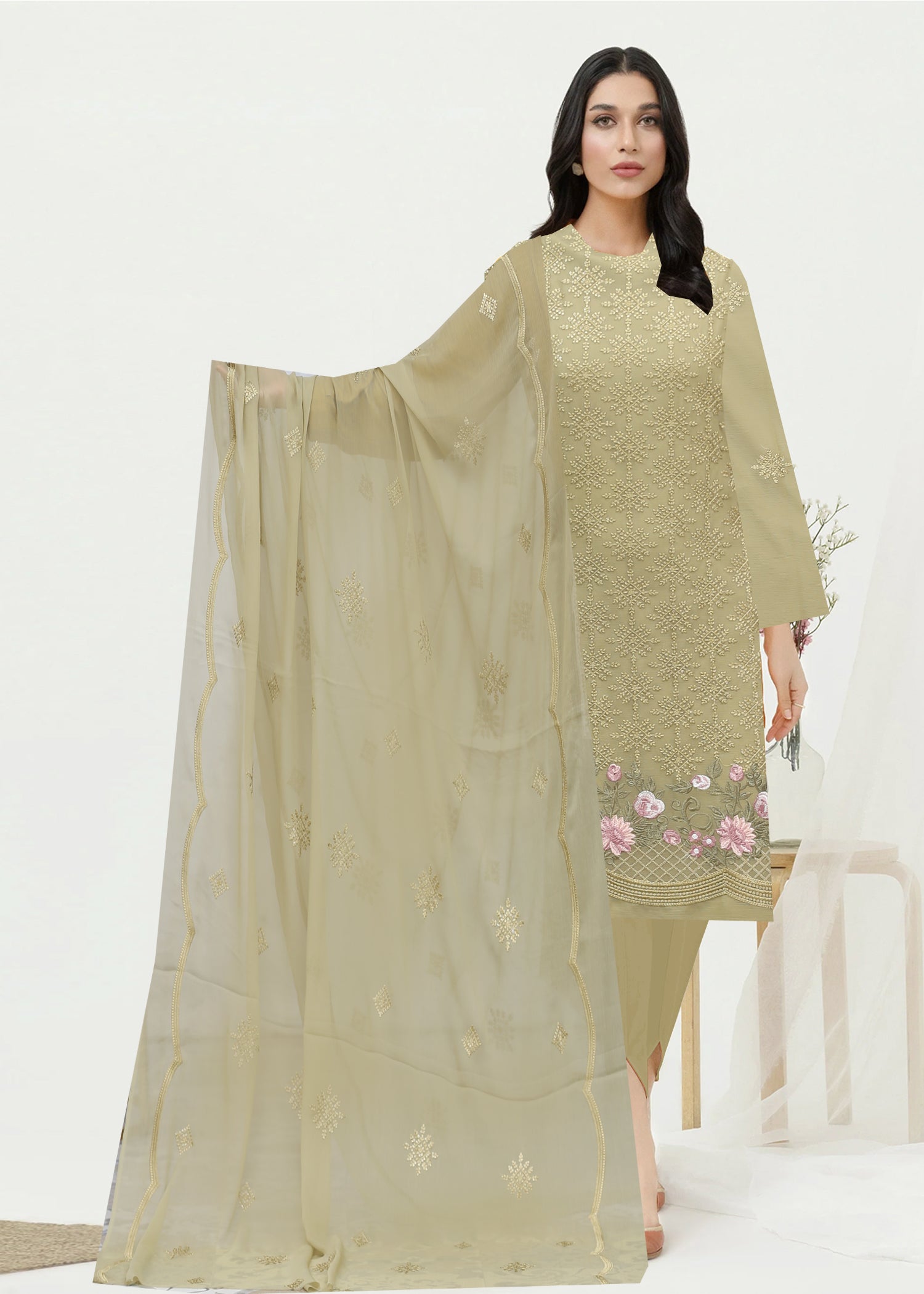 LIGHT MEHNDI GREEN WITH SEQUENCE Chiffon Embroidered 3Pc Suit (Unstitched)