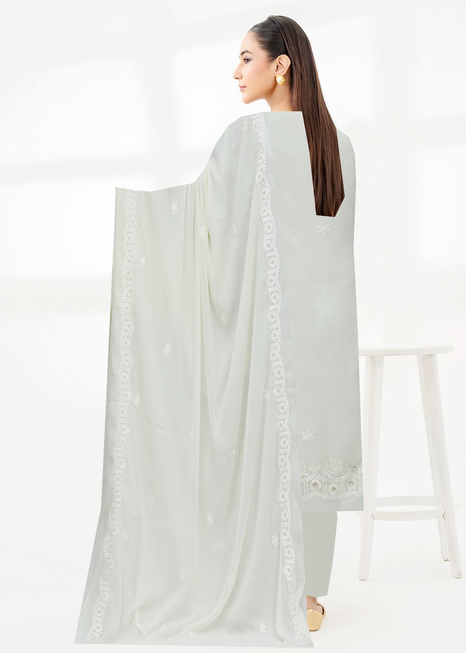 CREAMISH Chiffon Embroidered with LASER WORK 3Pc Suit (Unstitched)