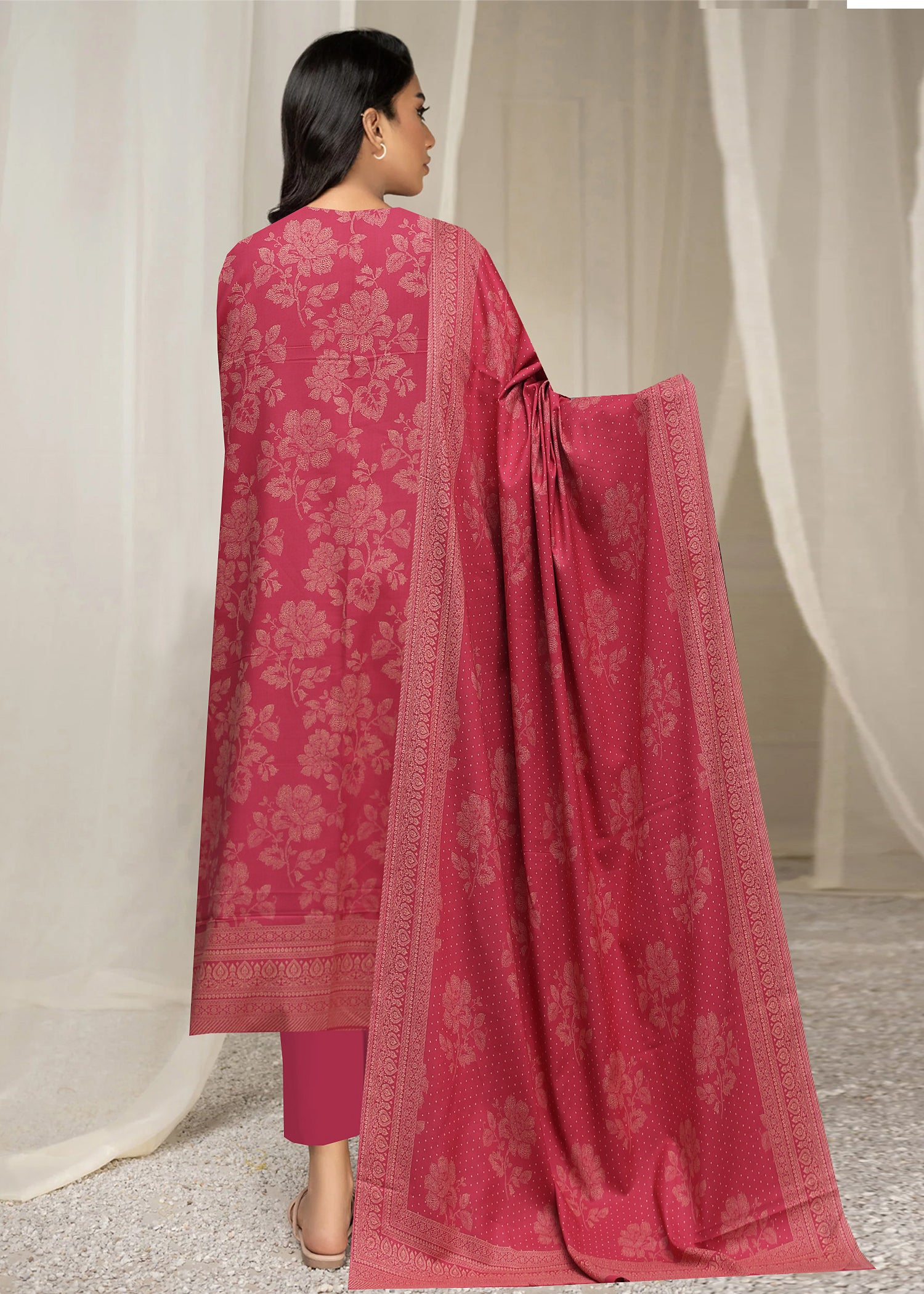 FUSCIA PINK 3Pc Premium Dhanak Printed Suits (Unstitched)