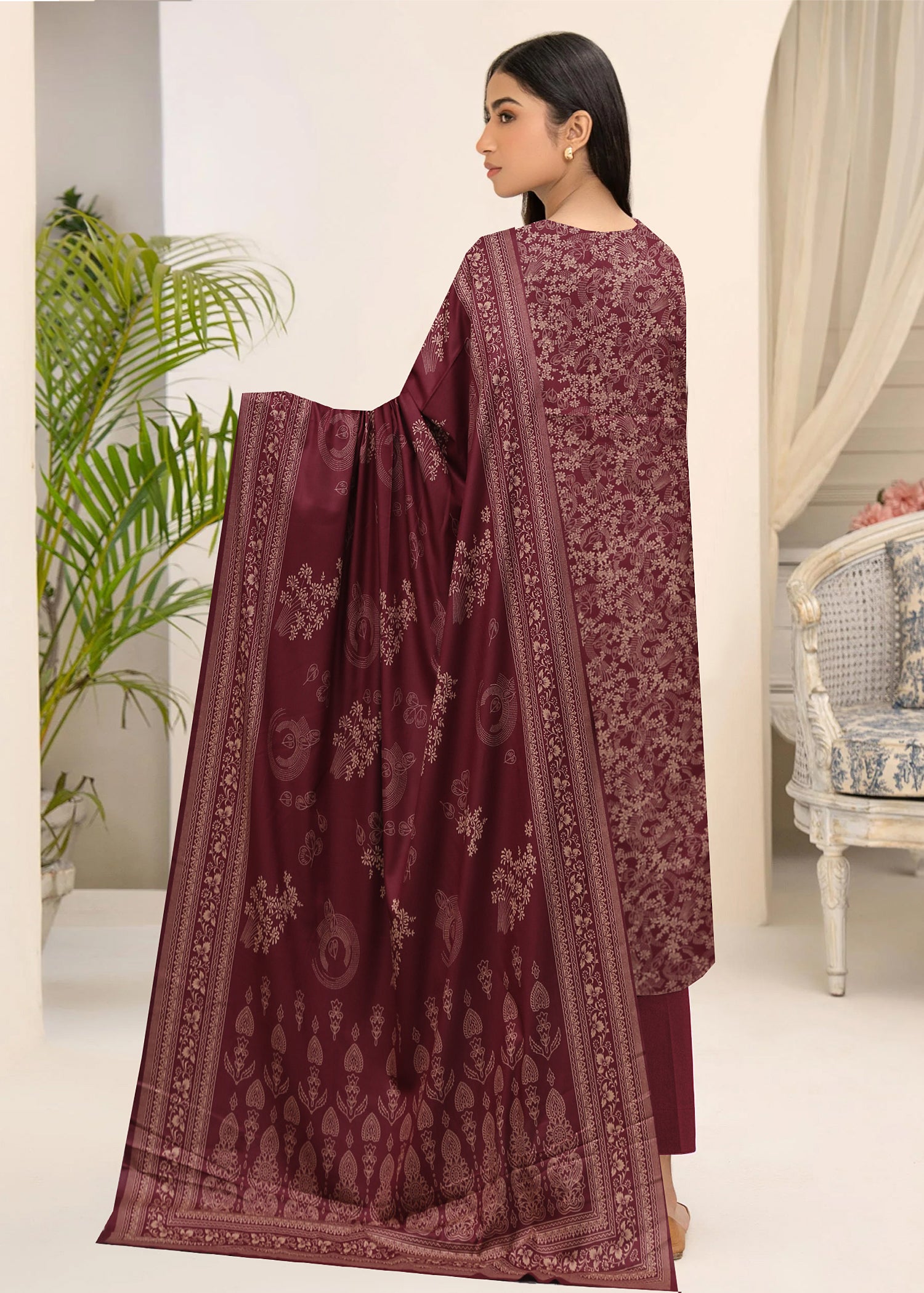 MAROON 3Pc Premium Dhanak Printed Suits (Unstitched)