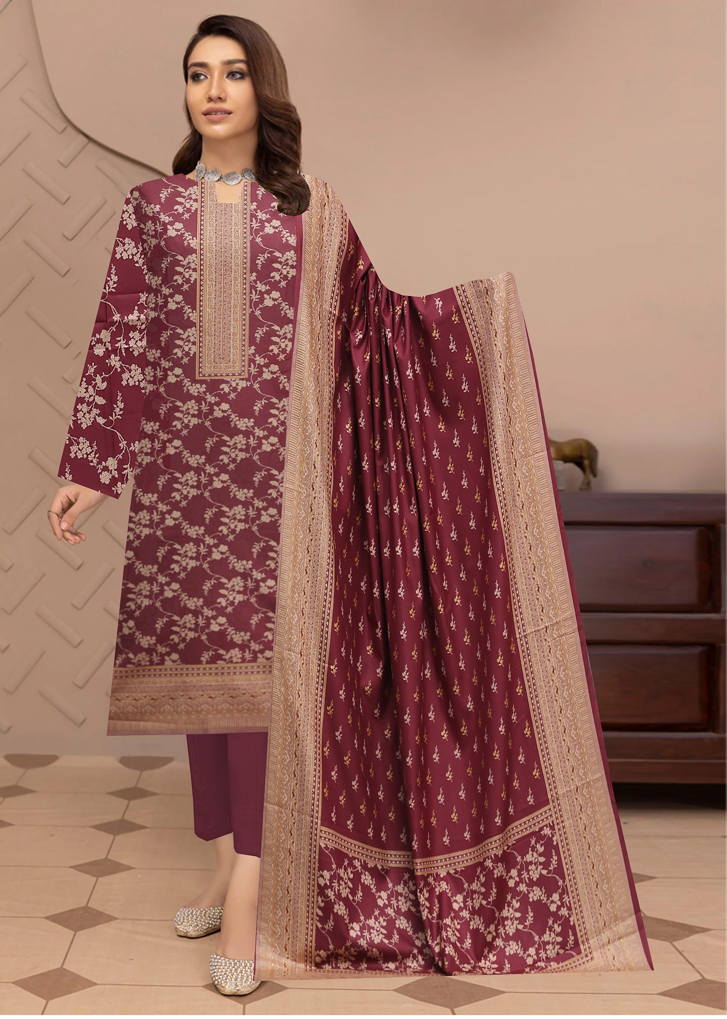 MAROON 3Pc Premium Dhanak Printed Suits (Unstitched)