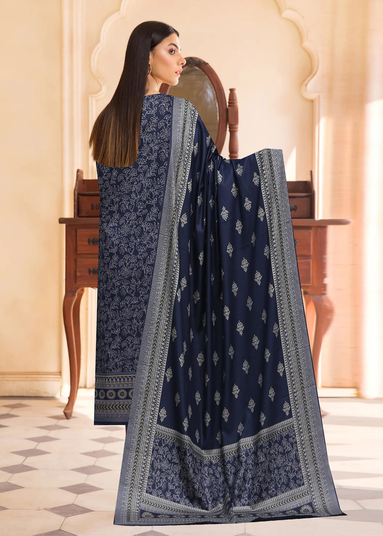MIDNIGHT BLUE 3Pc Premium Dhanak Printed Suits (Unstitched)