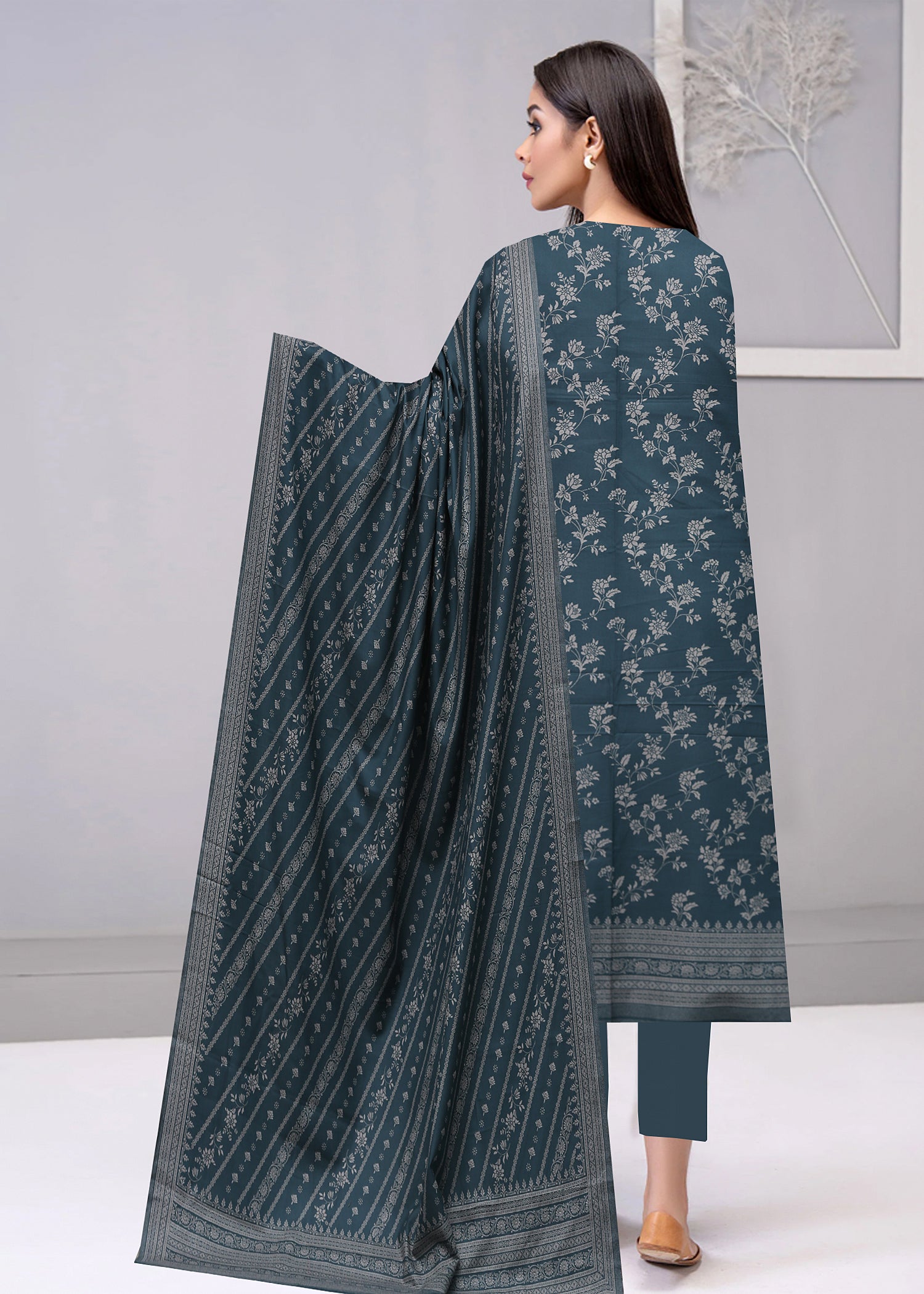PEACOCK BLUE 3Pc Premium Dhanak Printed Suits (Unstitched)