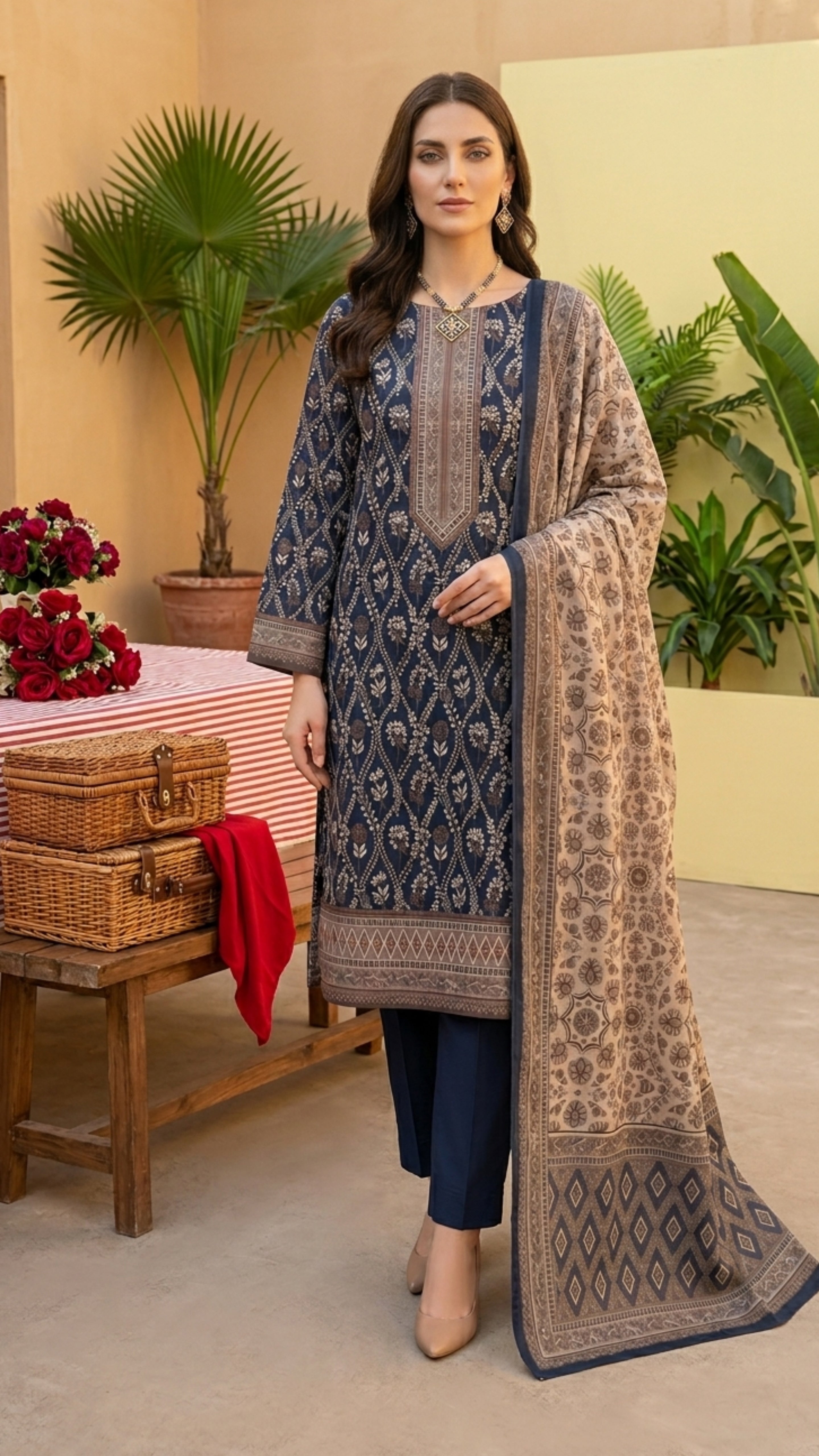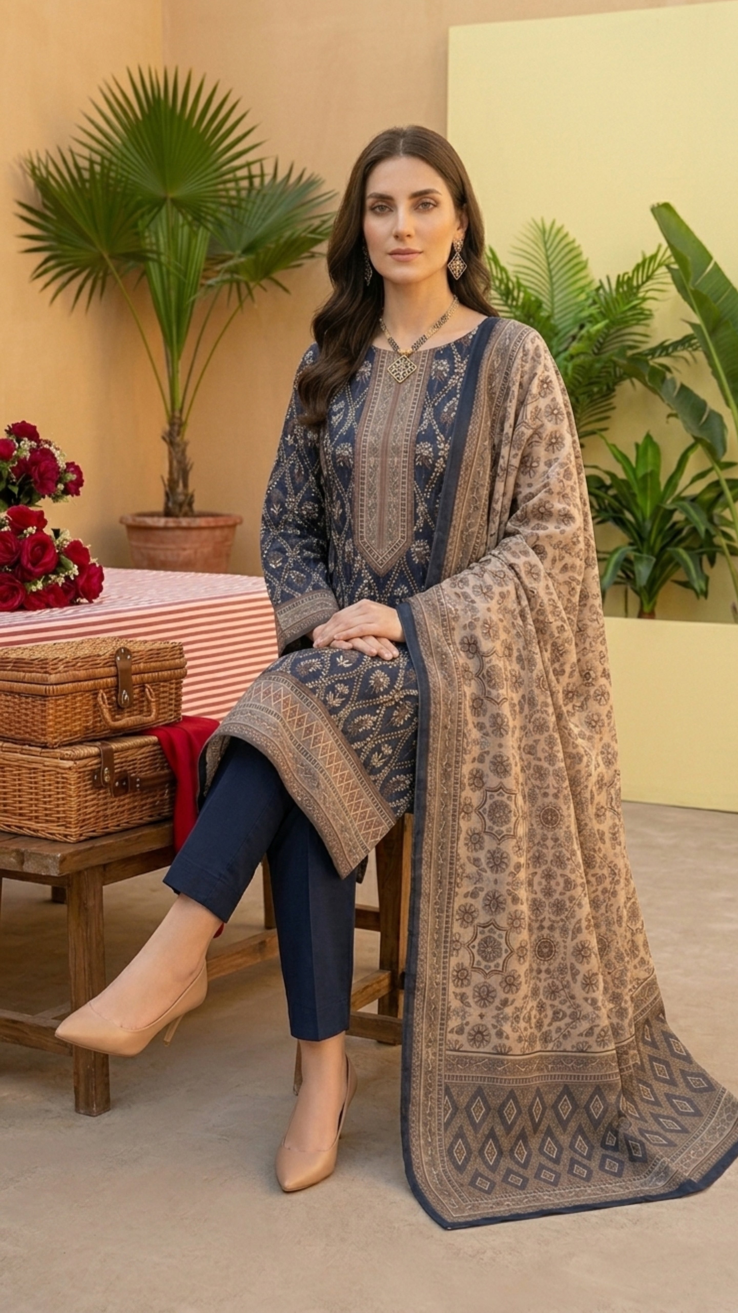 Upgrade your wardrobe with our Premium Swiss Voile 3 PC Printed Suit. Made from the finest Swiss Voile fabric, this suit is both luxurious and comfortable. Its unique print adds a touch of elegance to any occasion. Customize the fit with our unstitched design. Elevate your style with this premium suit.