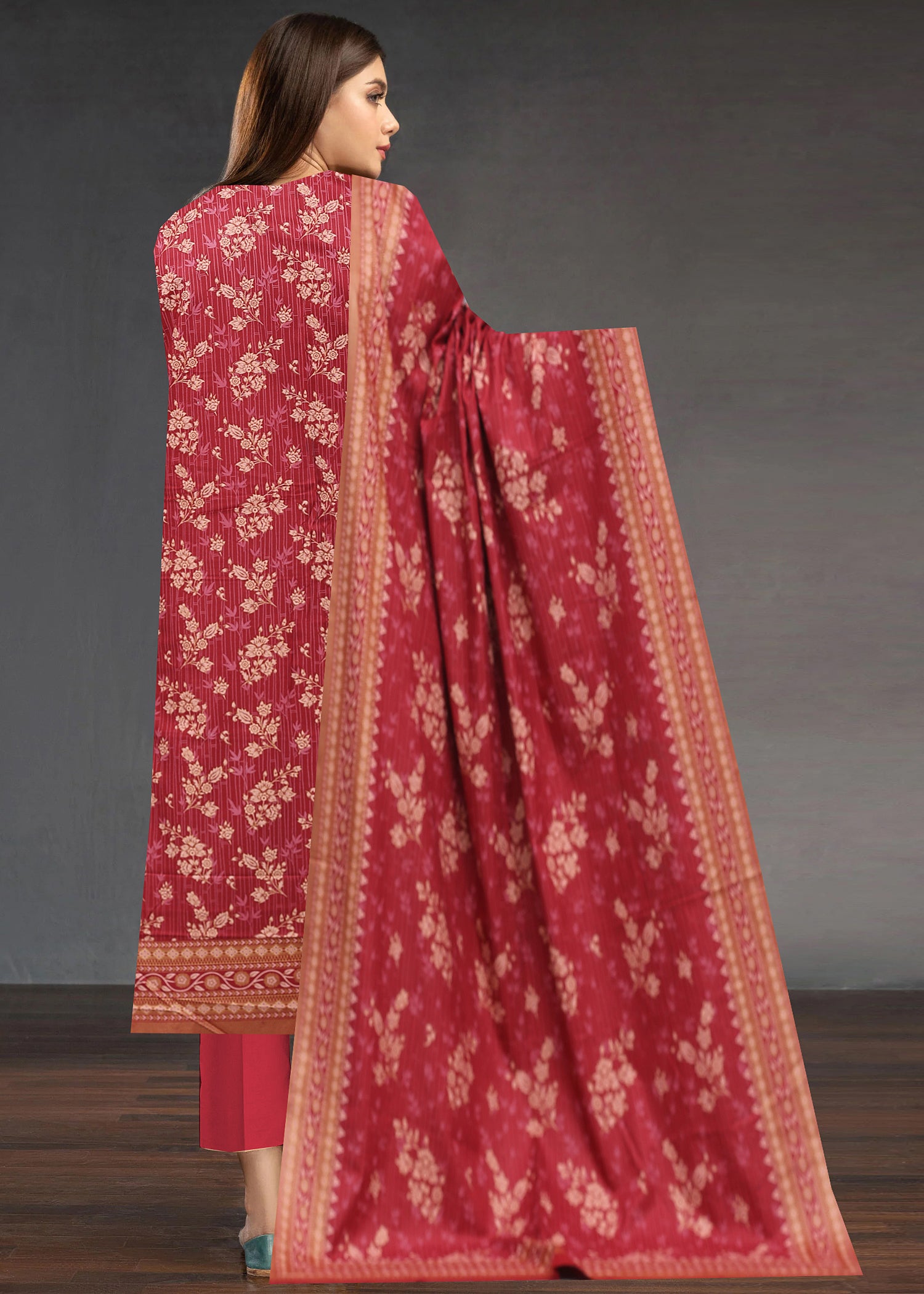 RUBY RED 3Pc Premium Dhanak Printed Suits (Unstitched)