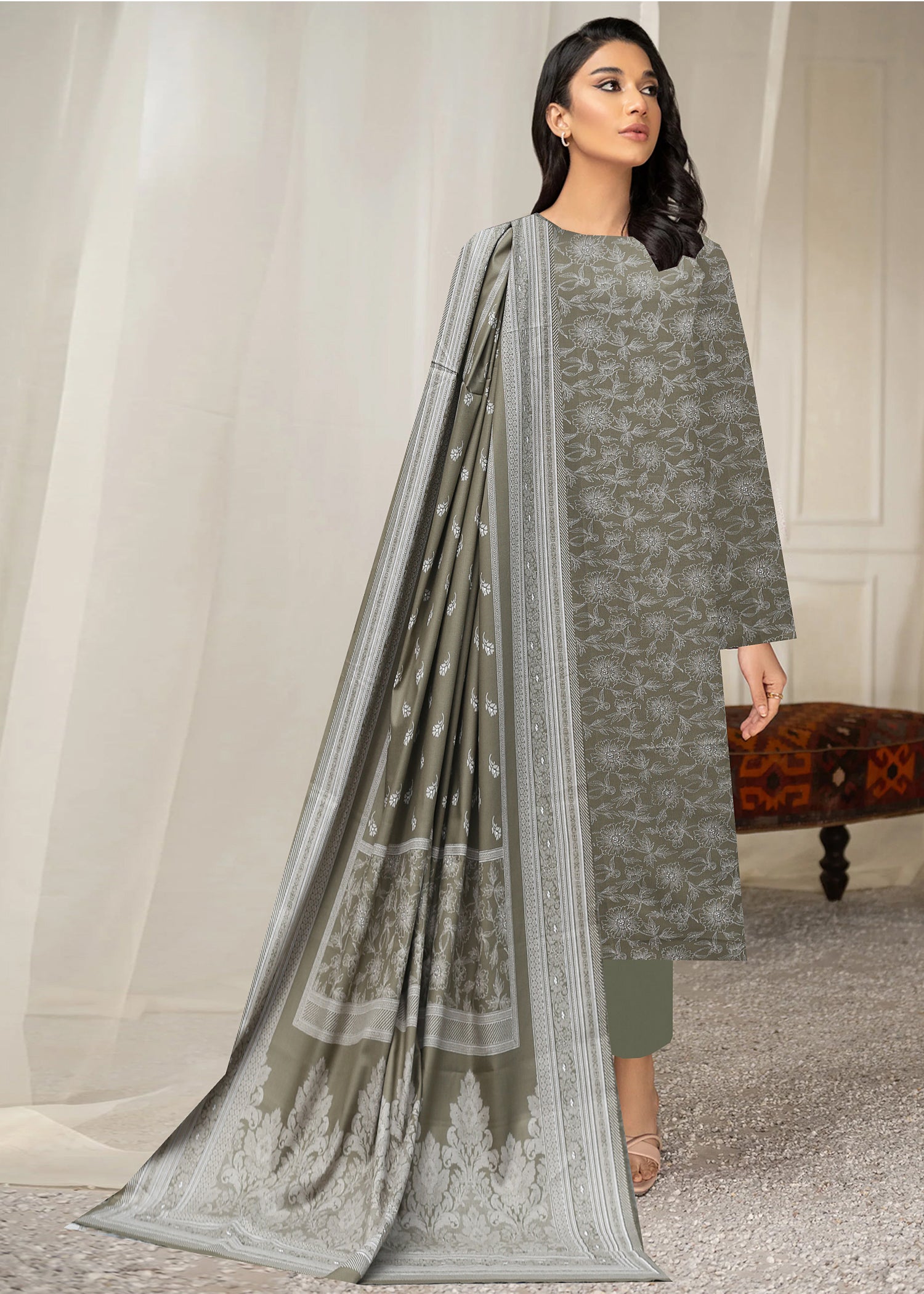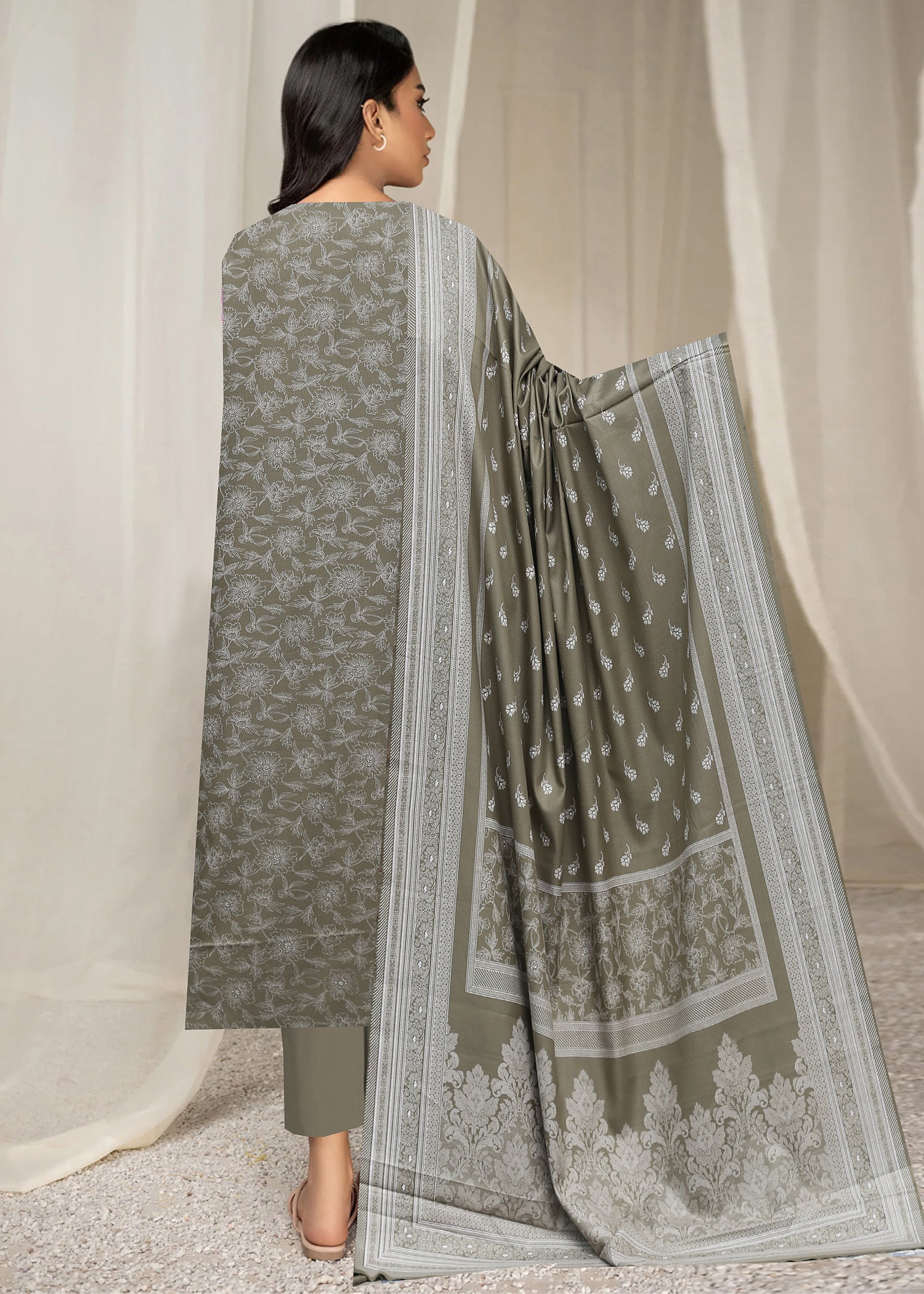 SAGE GREEN 3Pc Premium Dhanak Printed Suits (Unstitched)