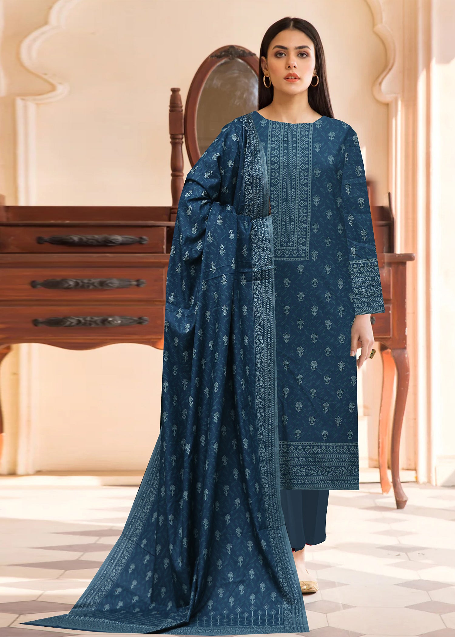 ZINC BLUE 3Pc Premium Dhanak Printed Suits (Unstitched)